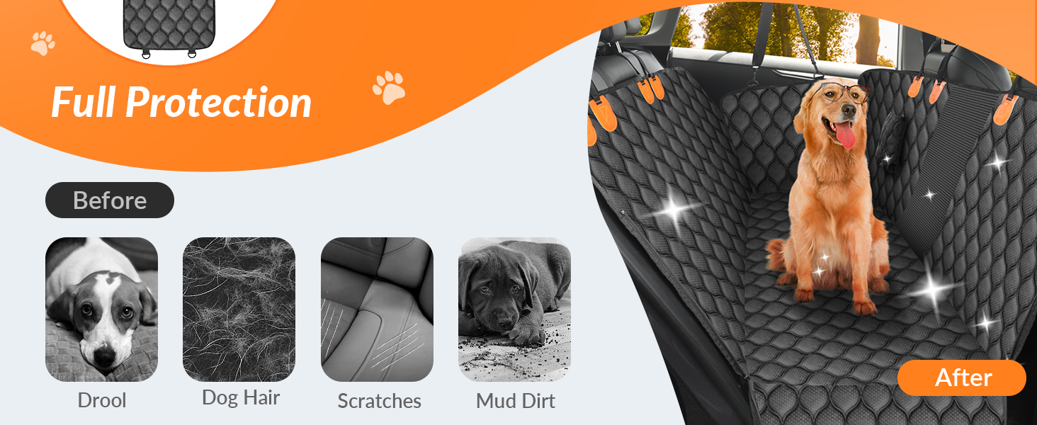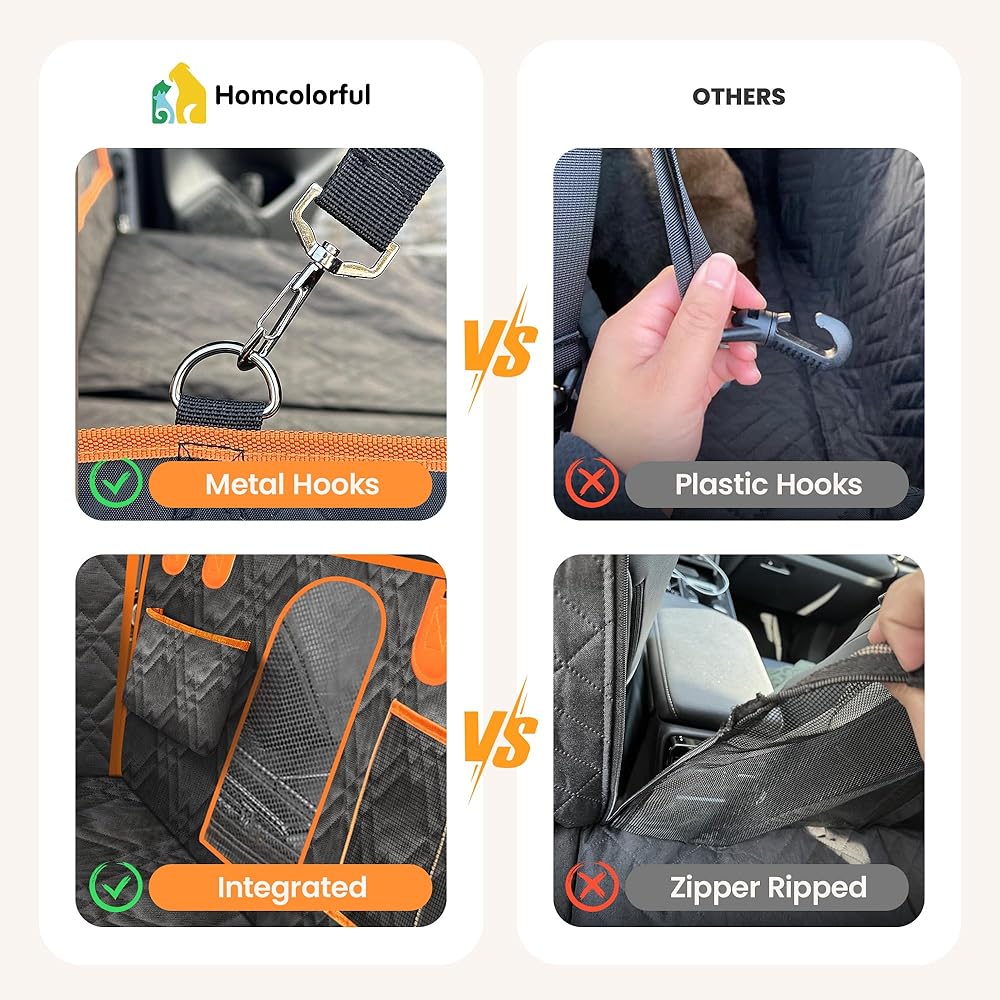{Safety First} Say goodbye to worries about your pet's safety during sudden stops or turns. Homcolorful Nonslip Dog Car Hammock's net-like anti-slip design at the bottom and the included dog safety belt help keep your dog secure at all times.
