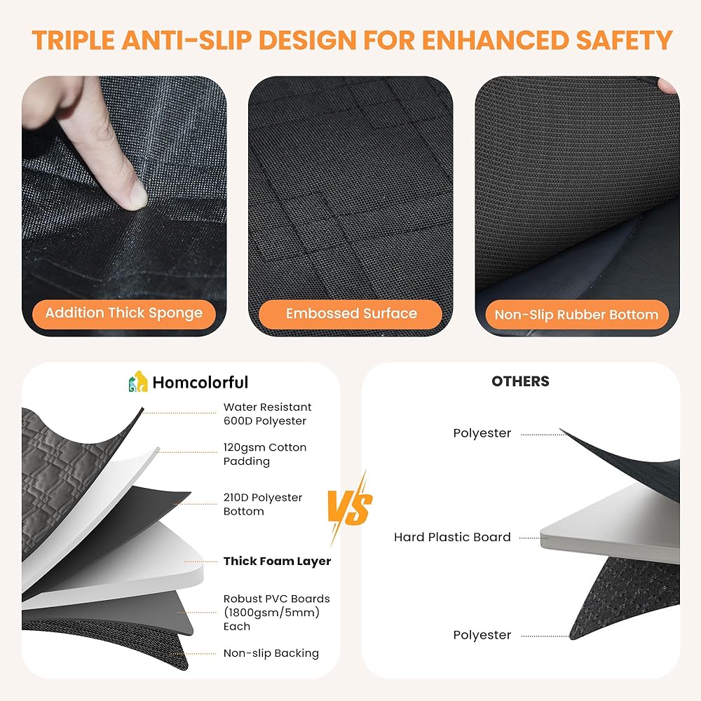 {Four-Layer Cushioning} The four-layer thickened base of Homcolorful back seat cover for dogs not only ensures durability but also offers excellent waterproof,wear-resistant and dirt-resistant properties. Whether you have a big dog or multiple furry friends, this mat can handle it all.