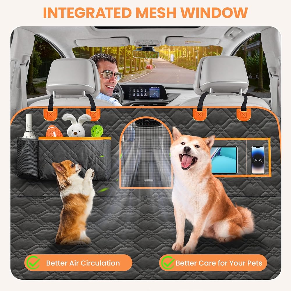 {Keep Your Friend Stay Cooling and Relaxed} Homcolorful back seat cover for dogs features a ventilation window in the middle,allowing the cool breeze from the air conditioner to blow unobstructed to the back seat,keeping your dog refreshed in the summer.This design also allows your dog to see you and the outside scenery at any time,effectively helping to alleviate any anxiety your pet may feel.