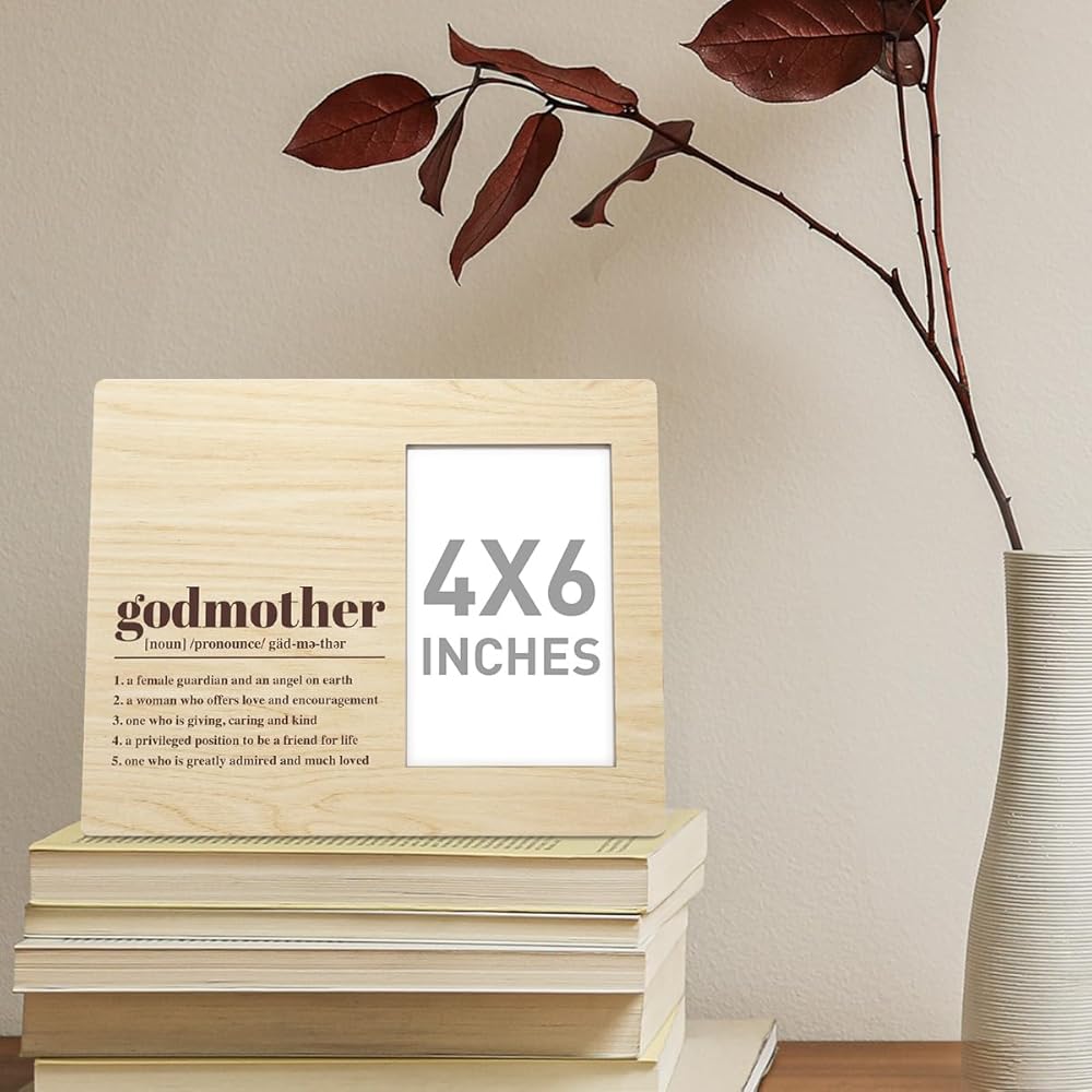 Godmother Gift Wood Photo Frame - Female Guardian and Angel on Earth - Christmas, Birthday, Baptism, Christening Picture Frame From Goddaughter or Godson - Best Godmother Ever