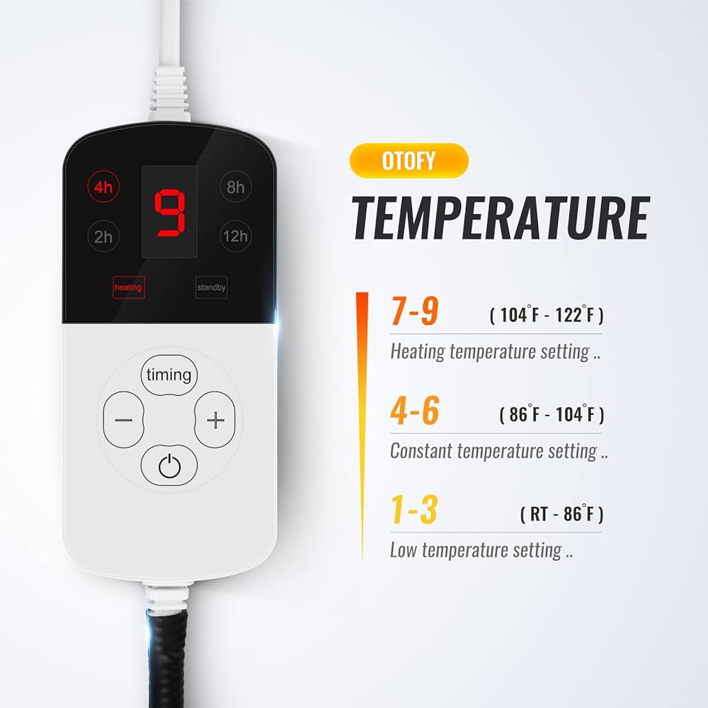 🐱TEMPERATURE ADJUSTABLE CONTROL --- The temperature can be adjusted in two gears, low gear at 35°C/95°F, high gear at 45°C/112°F, and additional power-off protection function, it will automatically power off when the temperature is too high, so we suggest you use high temperature heating, please adjust to low temperature for long time use.