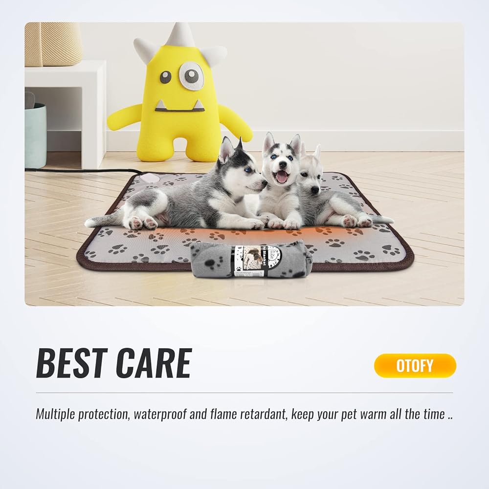 🐻WATERPROOF WARM PET MATS & GIFT PET BLANKET --- The pet heated pad help the pet (dog, cat, rabbit, etc.) to keep warm and comfortable when spend winter. NOTICE: This pet pad is intented for indoor use only.(It is recommended that buyers do not put them in the same place for a long time and pay attention to the ventilation at the bottom, otherwise the floor or bed will be discolored due to long-term heat.)