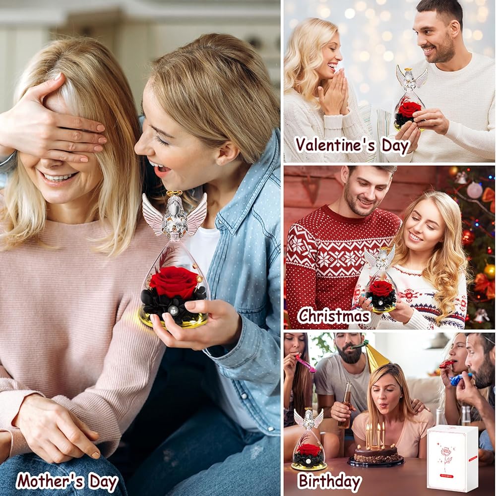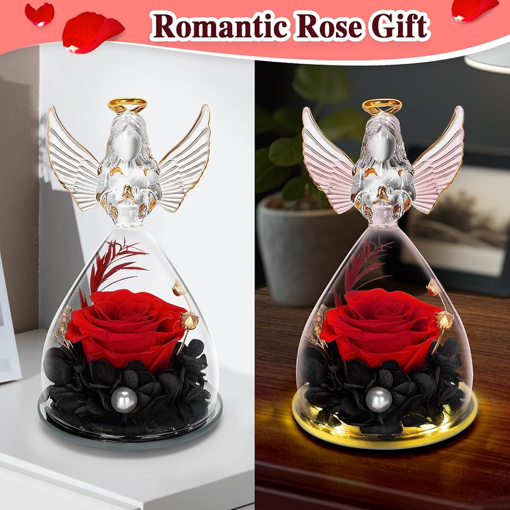 Good Angel Figurine Home Decor: Our angel figure forever flower gift is the perfect decoration for candlelight dinners, weddings, parties, living rooms, bedrooms, offices, coffee shops. Eternal rose fits perfectly with the handmade angel figurines and statues. A beautiful way to make a person feel special and meaningful at birthday or any other important days. Heartwarming and Lovely Female Gift as beautiful memory forever.