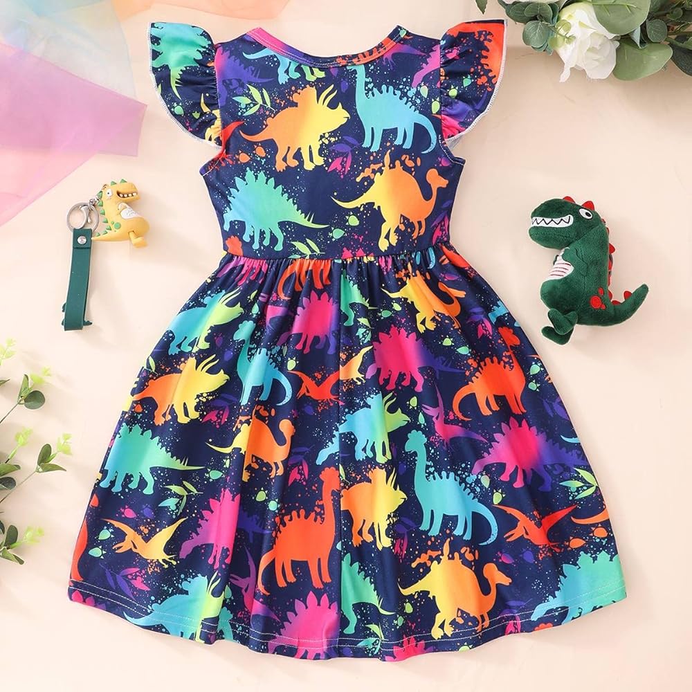 Toddler Baby Girl Dresses Summer Dinosaur Print Dress Sundress Ruffle Skirts Clothes