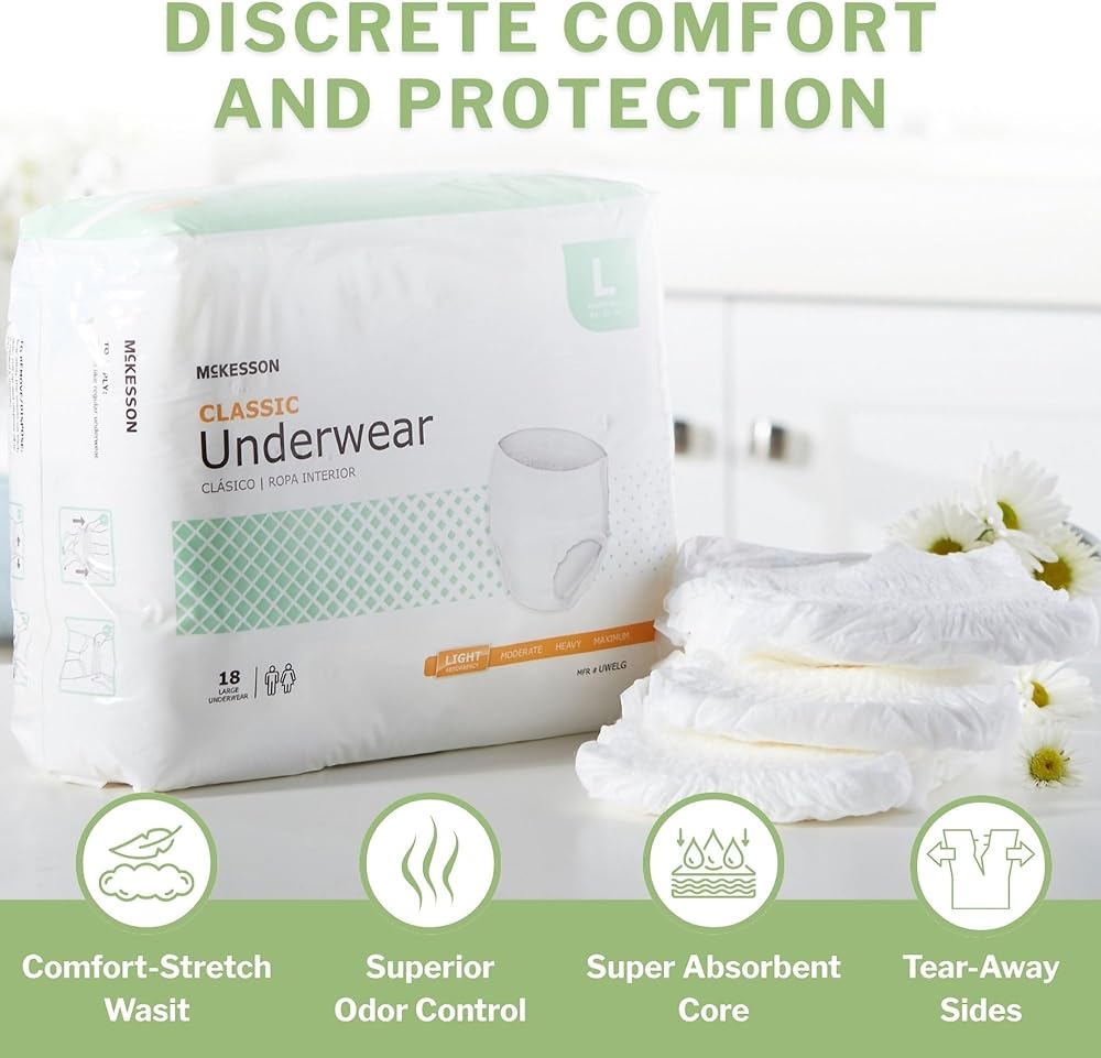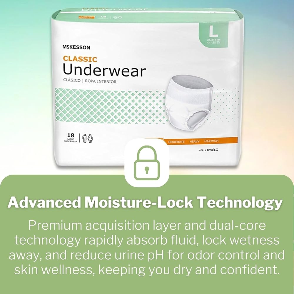 McKesson protective underpants are soft and cloth-like; material is latex-free and breathable to provide discreet comfort and promote dry, healthy skin