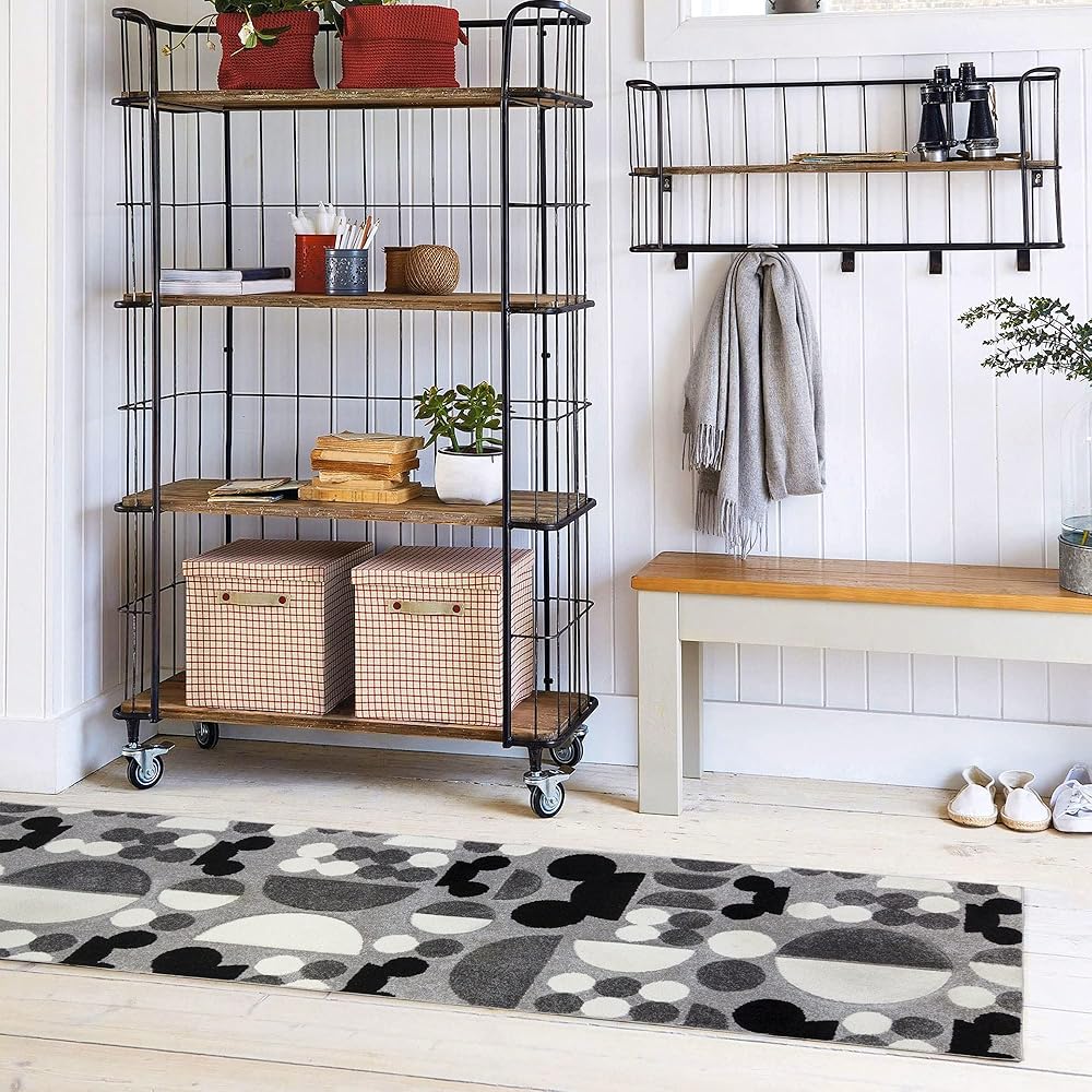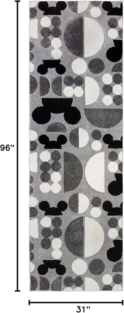Gertmenian Disney Mickey Mouse Modern Indoor Rug - 2x8 Runner, Non-Shedding, Ideal for High Traffic Areas in Living Room, Bedroom, Entryway - Abstract Spheres, Gray/Black/White, 45011