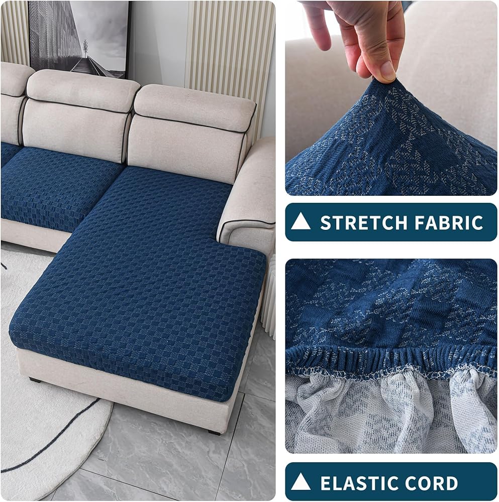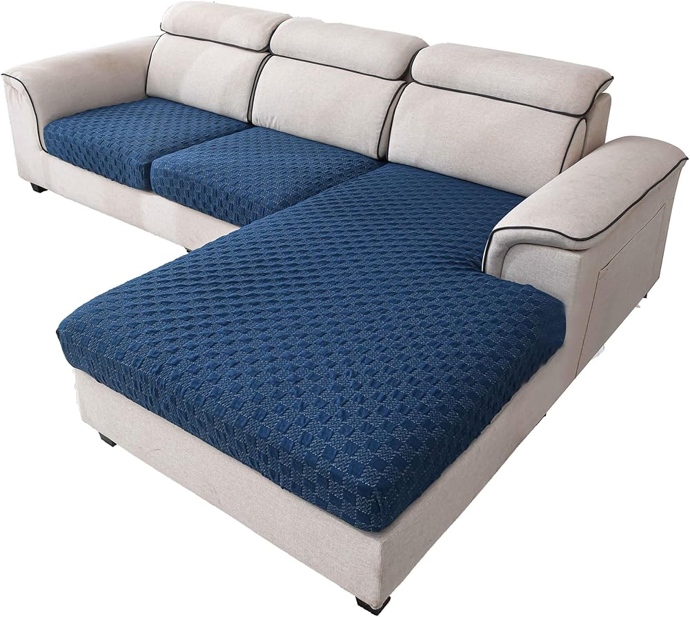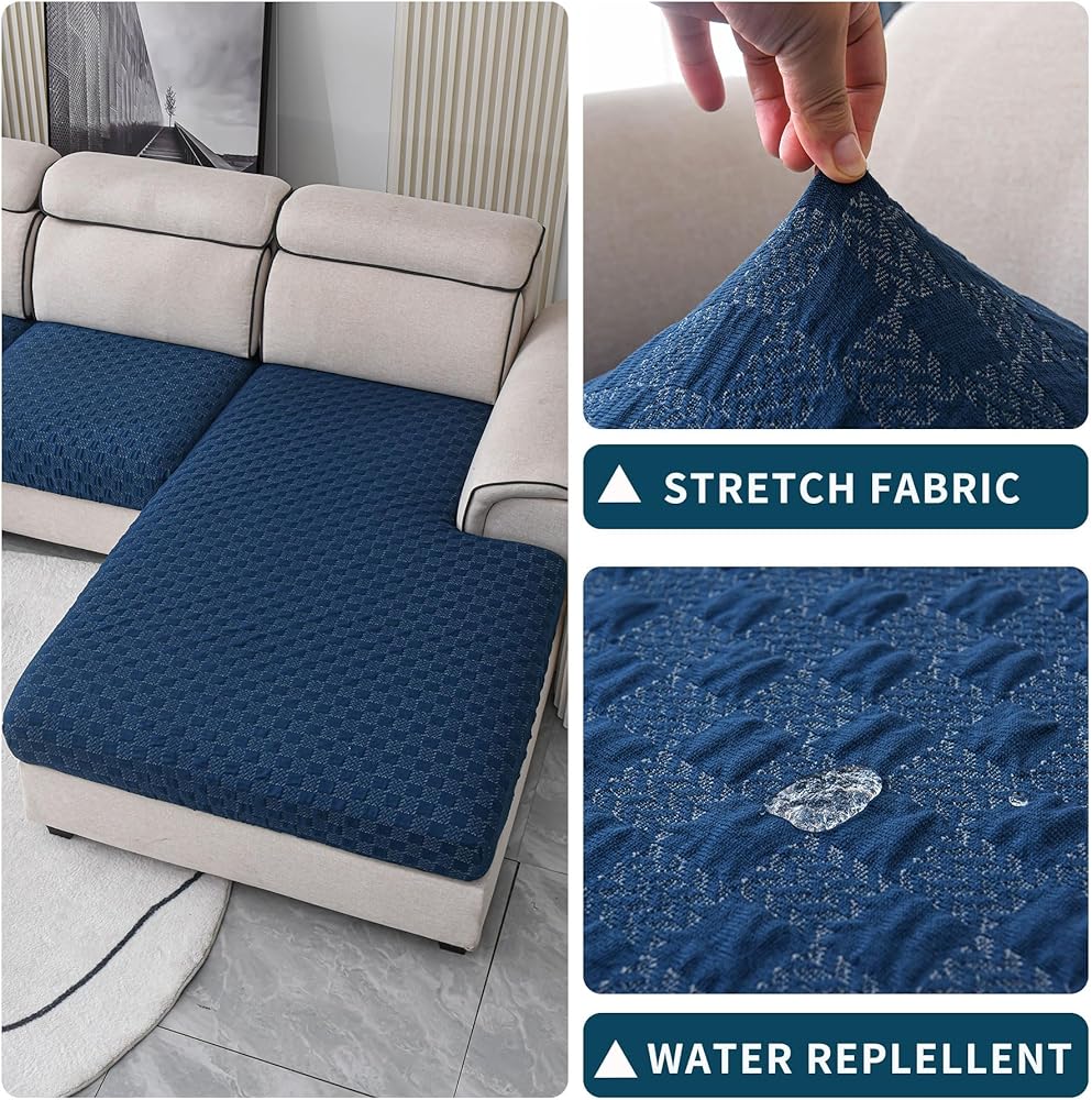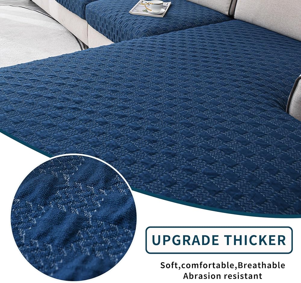 UPGRADED AND THICKENED:The l shape sofa cover is made of microfiber and machine woven using jacquard process, which makes the couch cover l shape have exquisite geometric patterns, soft and comfortable feel and bumpy texture, as a universal sectional couch covers, the separate couch cushion covers is suitable for 21-32 inches in width and depth and 2-10 inches in thickness, while the toffee recliner cover is suitable for 36-39 inches in width, 54-68 inches in depth and 2-10 inches in thickness.