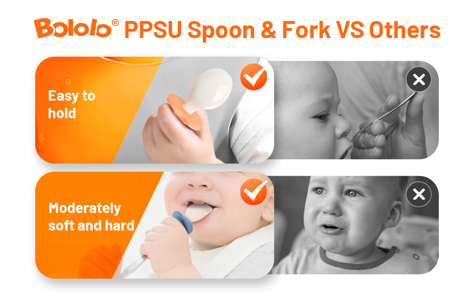 Food- graded materials: Made of food-grade materials, BPA-free. PPSU material has good hardness and is not easy to break. Baby can easily pierce and keep food on.