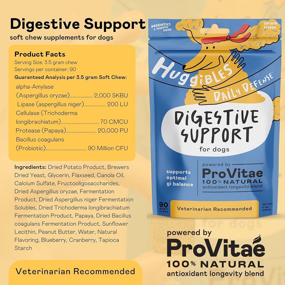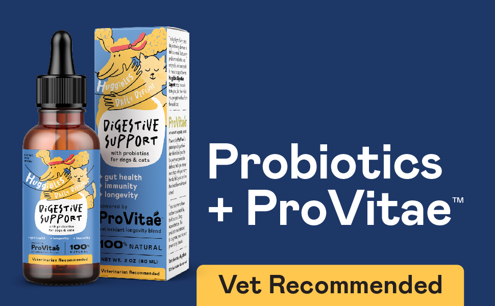 PROBIOTIC POWER: Give your pet the best day, every day with Huggibles Digestive Support pet supplement. This concentrated liquid supplement supports includes 12 billion total CFUs of probiotics strains for cats & dogs.