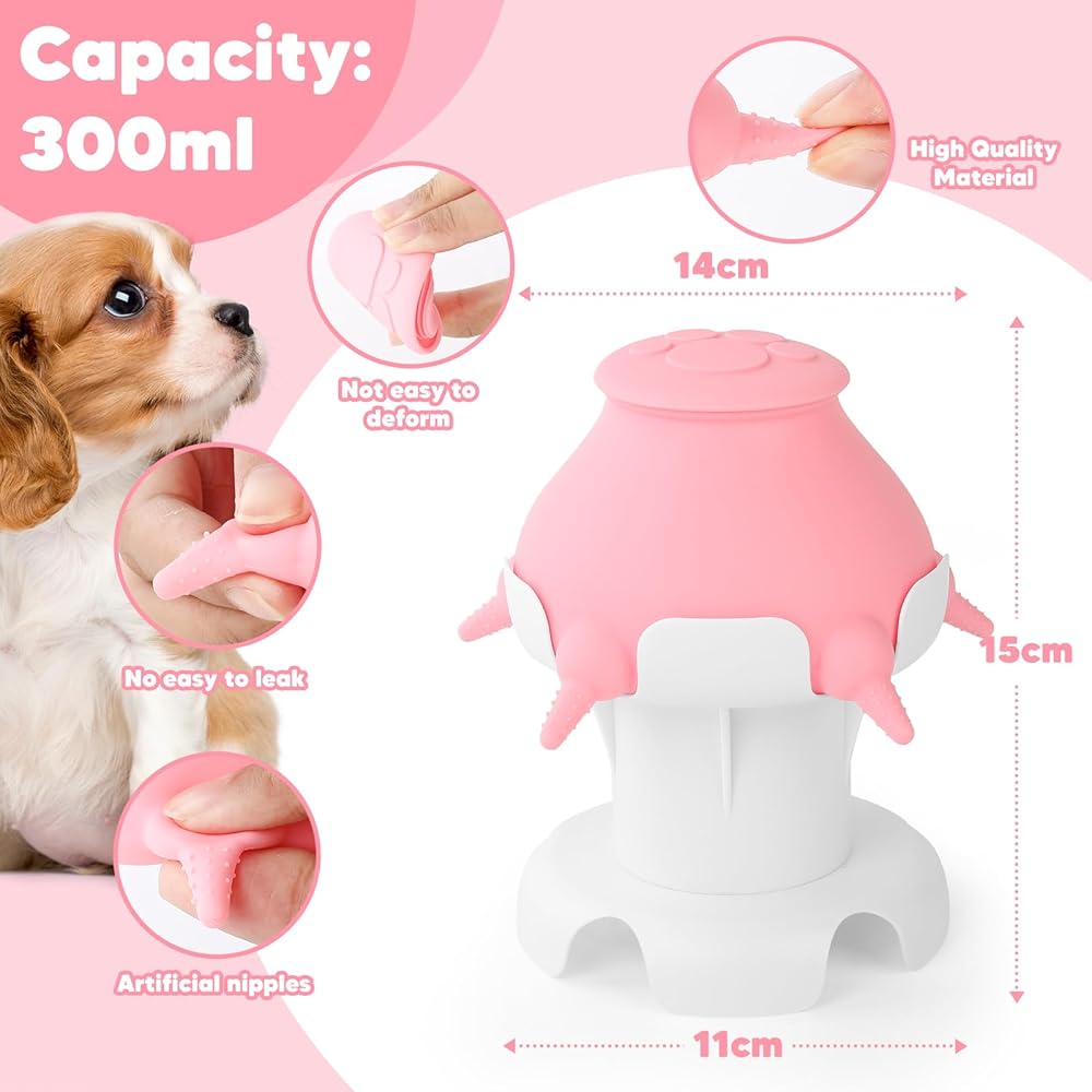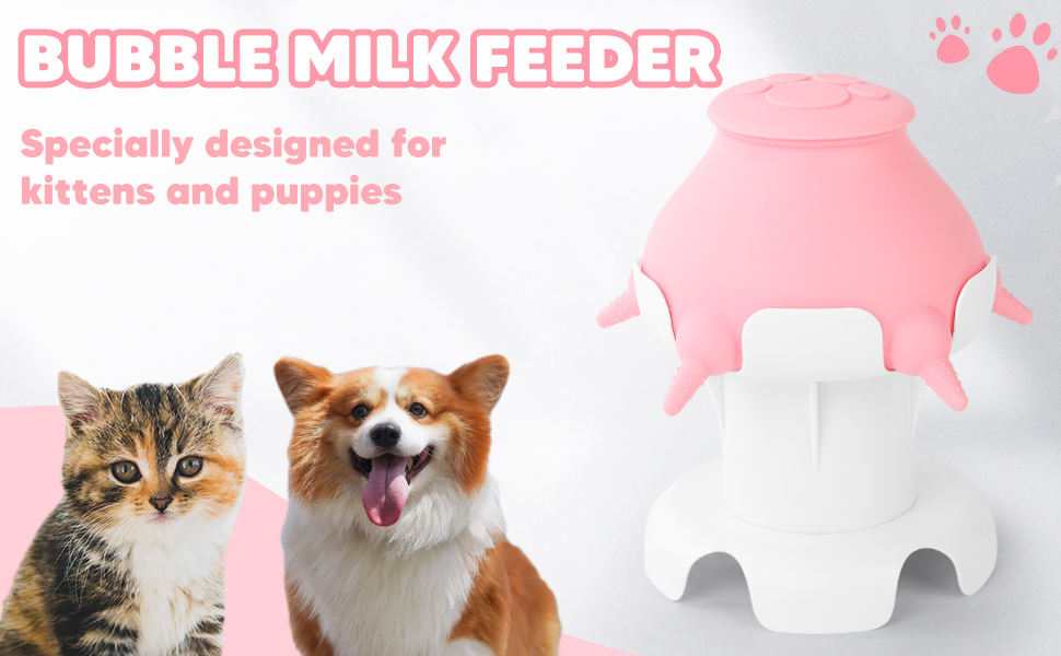 2.【Multi-Nipples for Puppies and Kittens】: 5 nipples milk and water feeding station, which could feed 4 puppies,kittens that can't eat by themselves at the same time , rather than the artificial feeding one by one, less time and effort, and safer