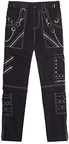 Cicilin Men's Punk Pants Goth Hip Hop Rock Casual Slim Fit Silver Chains Gothic Pants