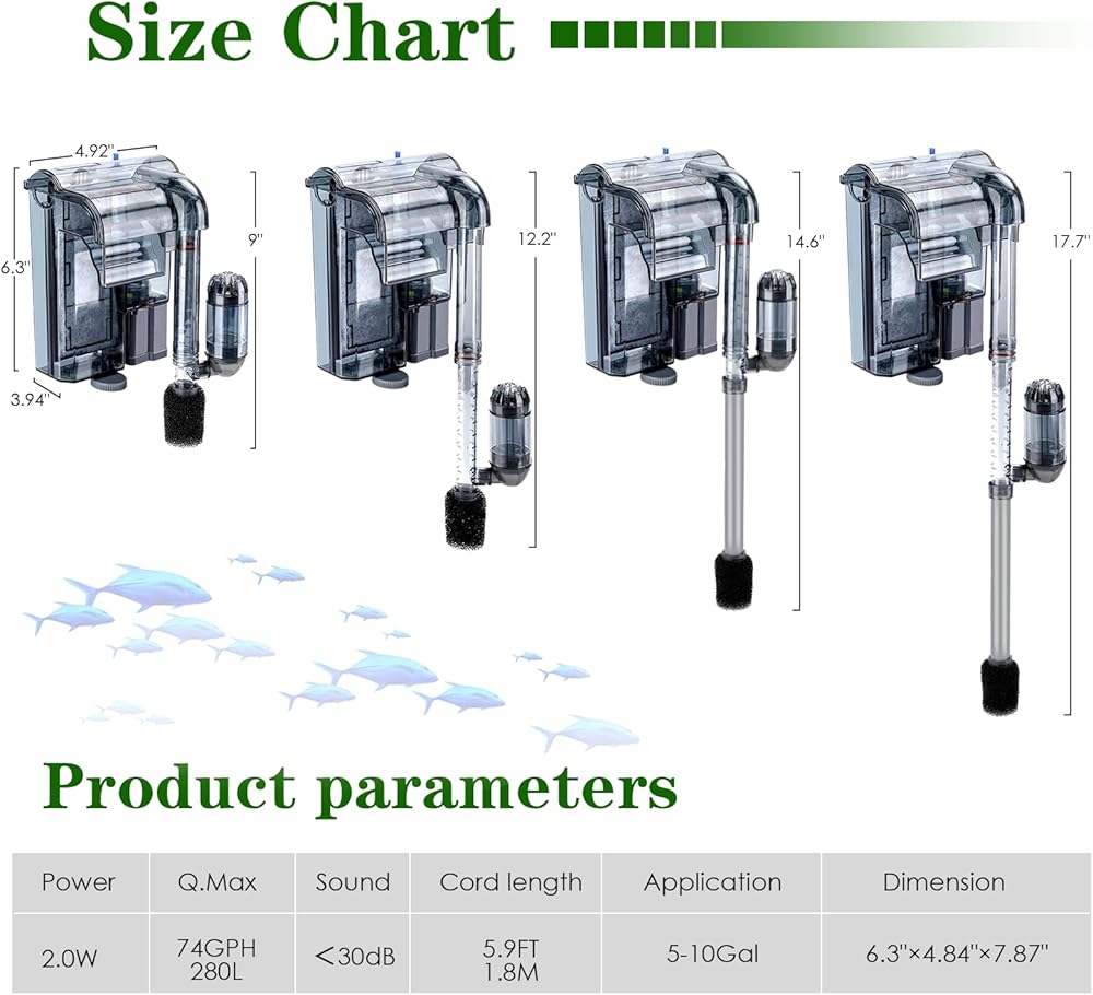【ترقية فلتر إسفنجي للطاقة】لا حاجة إلى مضخة هواء، قوة حصان قوية 2 وات 80 جيجا في الساعة، يمكنها تنقية جودة مياه خزان الأسماك بسرعة. تصميم تدفق المياه من نوع الشلال، لا يزيد فقط من جماليات خزان الأسماك، ولكن أيضًا يزيد من الأكسجين المذاب. خارجي يتم تعليقها بواسطة حوض السمك، وتأخذ مساحة أقل في حوض السمك، مما يترك مساحة أكبر للأسماك.