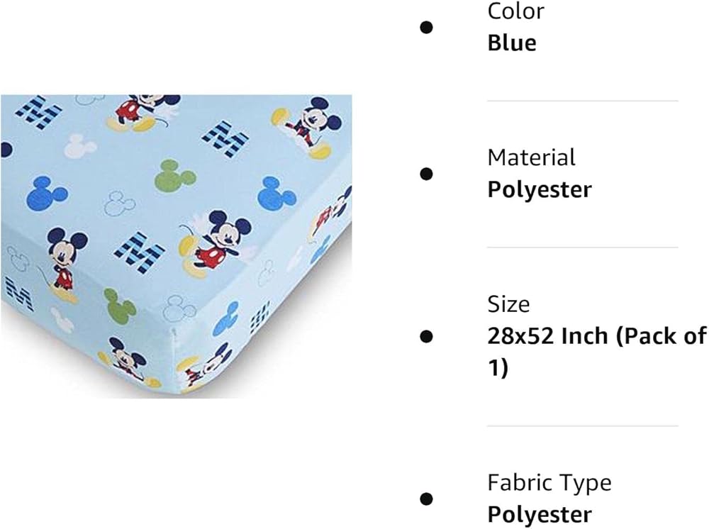"M" is for Mickey! Your little one will be all smiles with this Mickey Mouse fitted crib sheet from Disney Baby. The 100% Polyester will be smooth against babies skin, and allover Mickey Mouse print will be a great addition to any Disney-themed room.