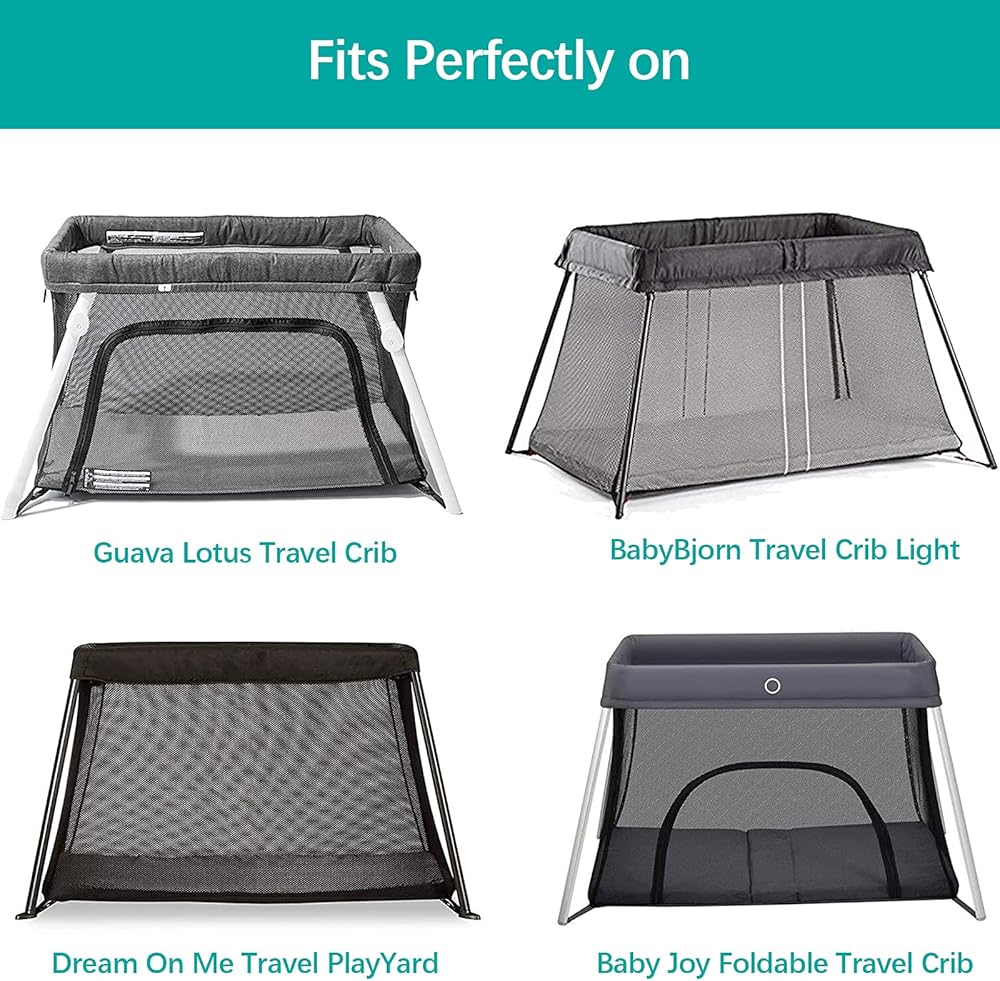 Perfectly Fit: Size 42''X24'',With highly stretchy skirt, the travel crib sheets can perfectly fit Guava Lotus Travel Crib mattress with no loose but flat, more safe and secure for your baby's entertainment time.These travel crib sheets are compatible with Guava Lotus travel crib, Baby Bjorn travel crib light, Dream On Me Travel Light Playyard mattress and similar size Pack and Play.
