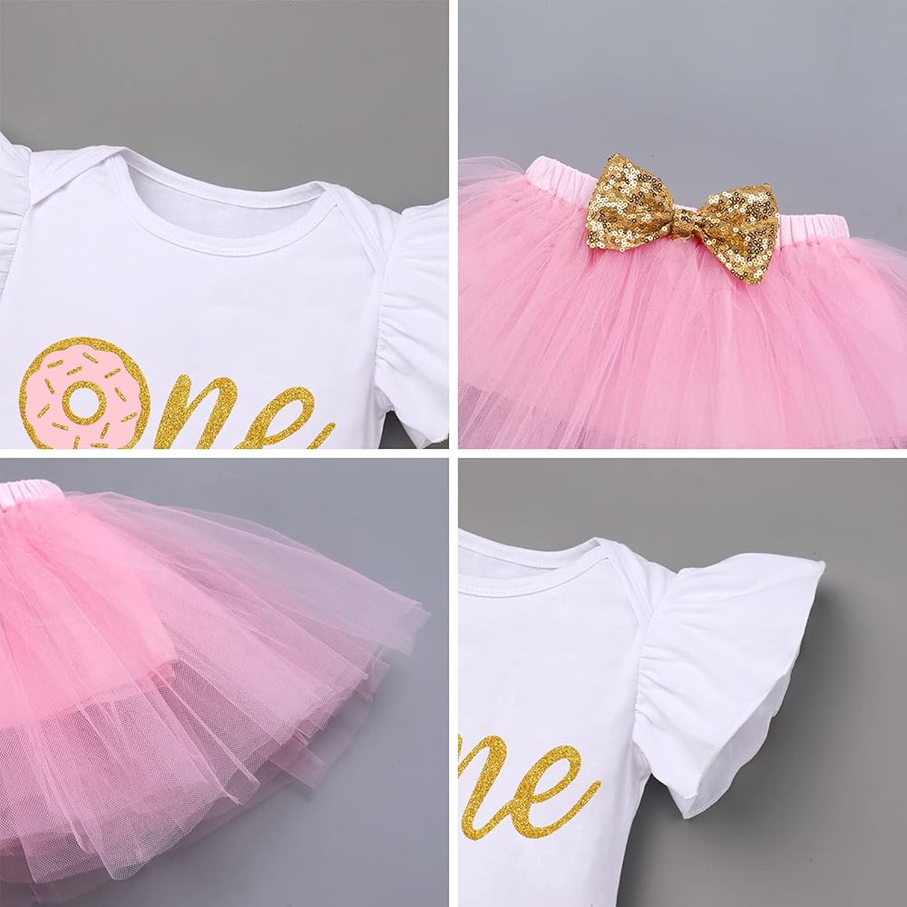 🧡🧡【4PCS Donut Birthday Outfit Baby Girl Tutu Skirt Set】Adorable pink donut theme birthday costume, donut 1st birthday outfit, donut 2nd 3rd birthday outfit, donut 1/2 birthday outfit. Infant baby girls donut first birthday outfit, 4PCS in one set, Donut Romper / Shirt + Donut Berry Tutu Skirt + Headband + Leg Warmers. Cutest toddler little girls cake smash coming home outfit, Halloween dress up costume photo props, best as princess birthday gift for 6M-3T baby girls.