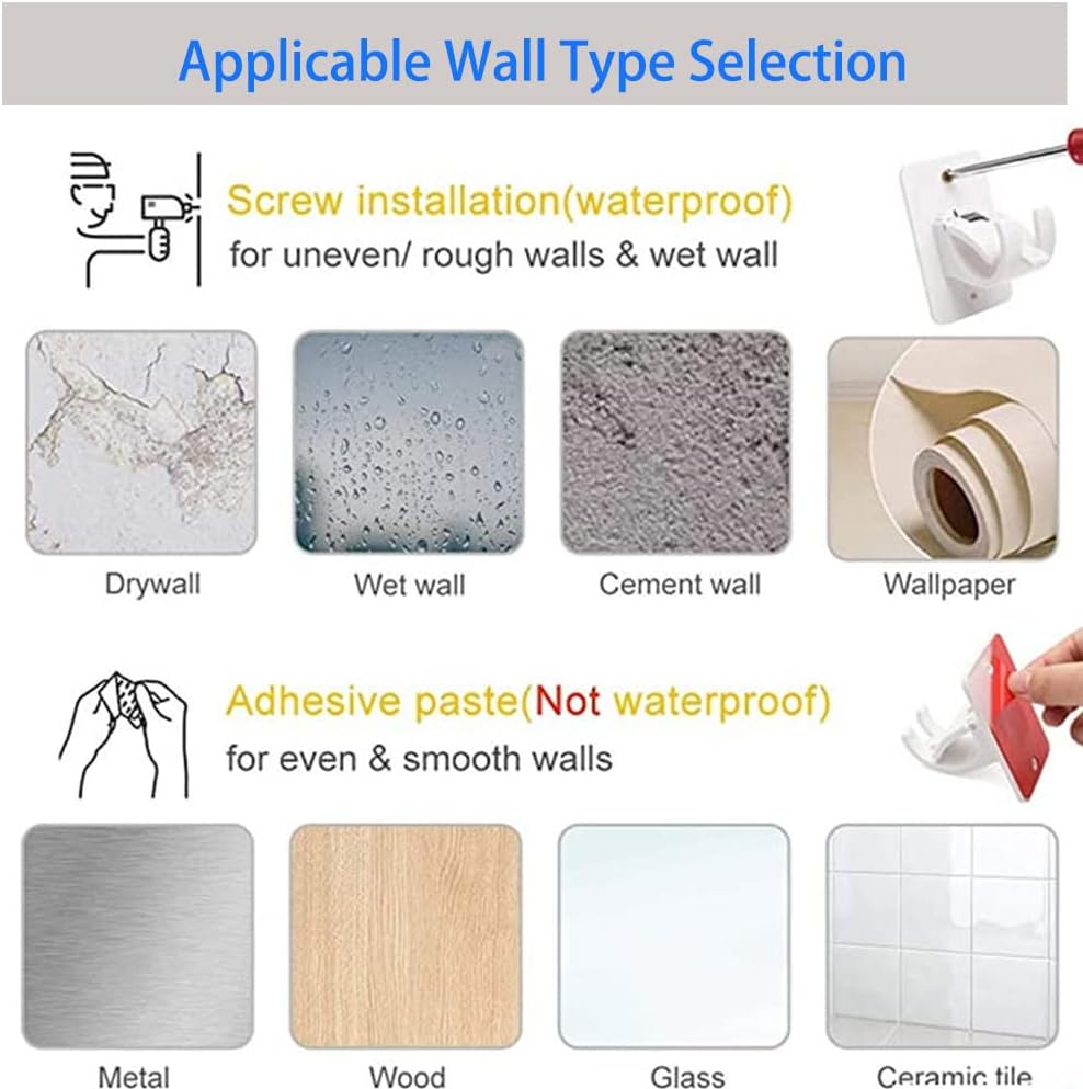 【Easy to Install】Super Adhesive on the backside,for smooth walls, easy to install without tools, No need drilling. Just wipe the wall and keep it dry, peel off the protect layer on the back, stick it on the desired position. For uneven walls, pls drill and install the brackets for sturdy use
