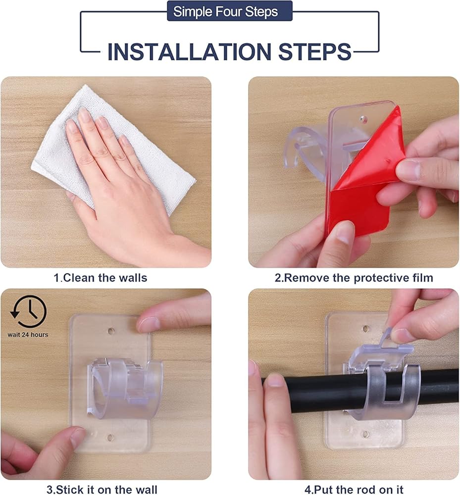 【Quality Materials】Made of quality plastic and stainless steel, these curtain rod hooks are stable, durable, and have long service cycles.2PCS curtain rod bracket With a load capacity of 3kg/6pounds,adhesive curtain rod holders can ensure the safety of use.