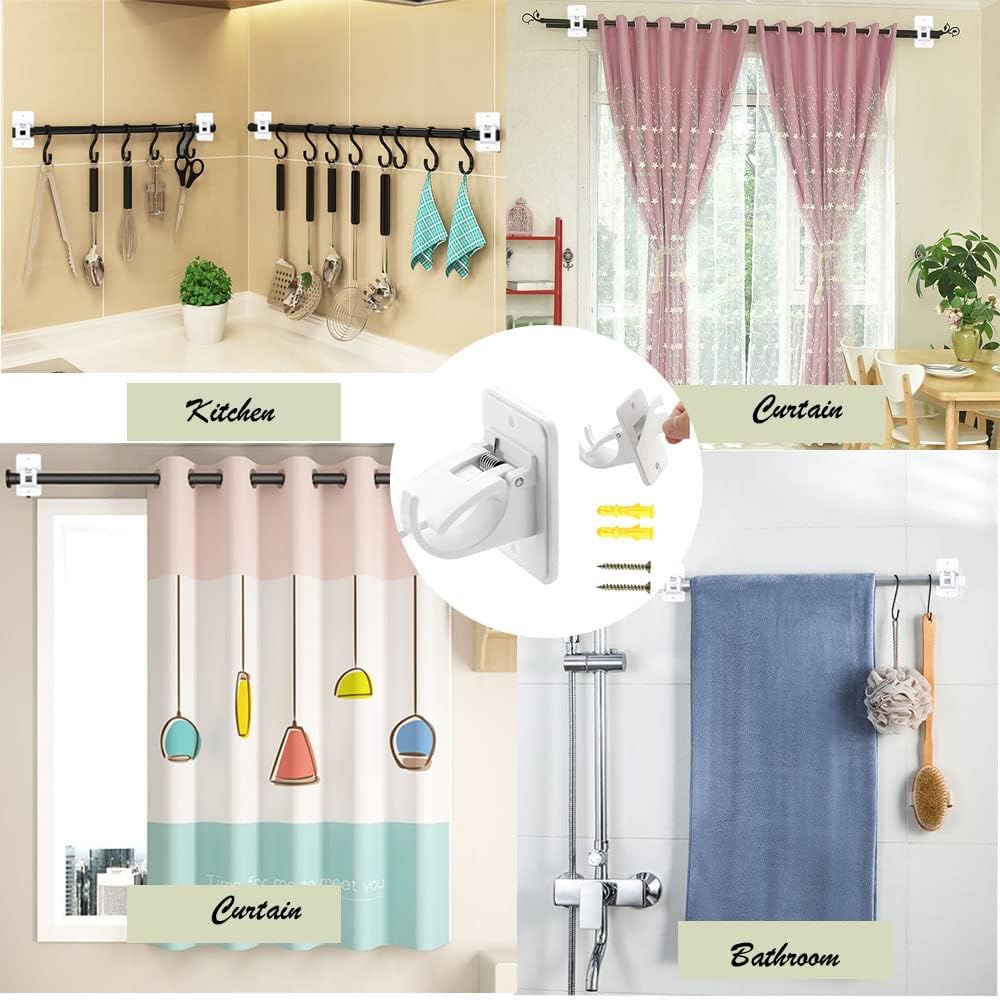 8 PCS Autohesion Curtain Rods No Drilling, Adhesive Curtain Rod Holder Hooks, Curtain Rod Brackets Hanger with Screws, Bathroom Kitchen Home Bathroom Hotel(White)