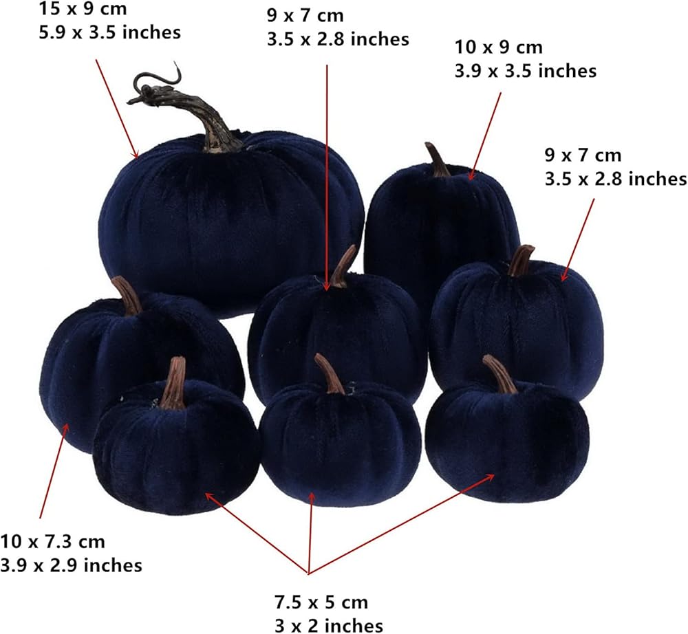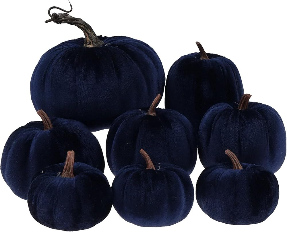 Gresorth 8pcs Assorted Size Fake Handmade Blue Velvet Pumpkins Artificial Fall Harvest Halloween Decoration for Home Kitchen Farmhouse Thanksgiving Wedding Festival