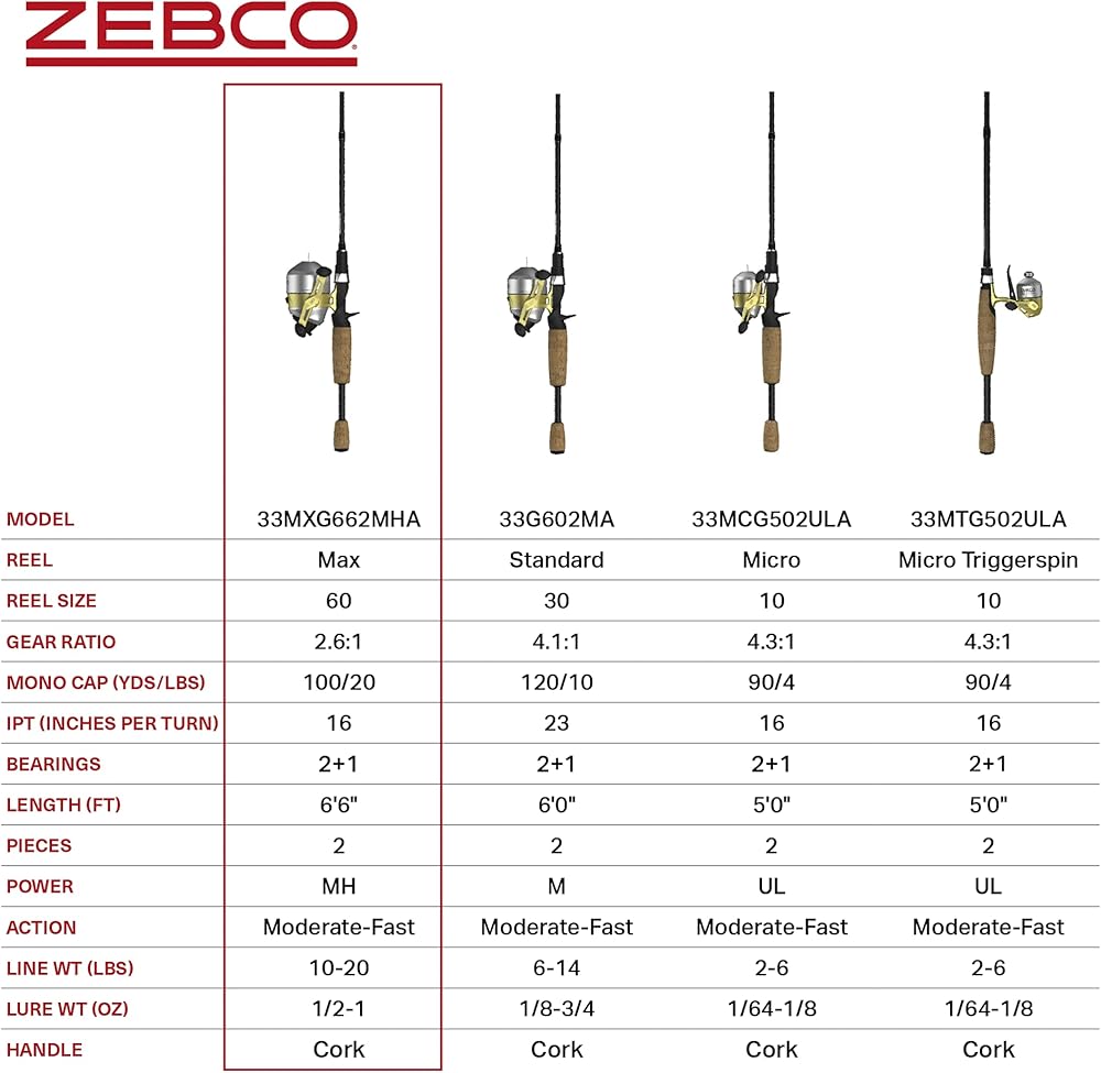 EASY-TO-USE: The Zebco 33 MAX Gold spincast combo features a 6-foot 6-inch 2-piece fishing pole and size 60 fishing reel. You will be ready to hit the water with the patented no-tangle design reel that comes pre-spooled with 20-pound Zebco Cajun line. Whether you're curious or serious about fishing, the reel that taught America to fish makes it easy