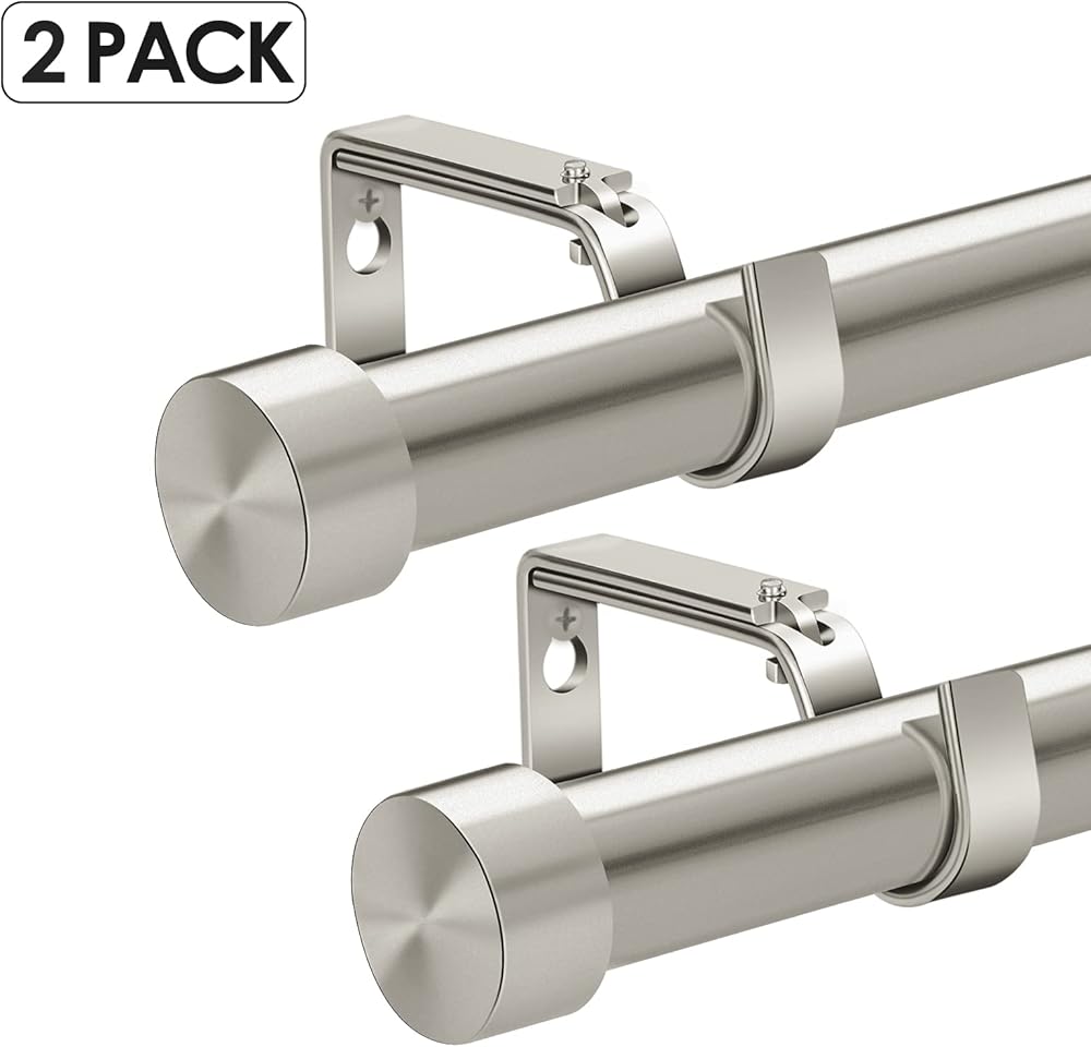 OLV 2 Pack Nickel Curtain Rods for Window 72 to 144 Inch, 1 Inch Diameter Adjustable Heavy Duty Modern Style Single Window Drapery Rods with End Cap Design Finials, Stain Nickel