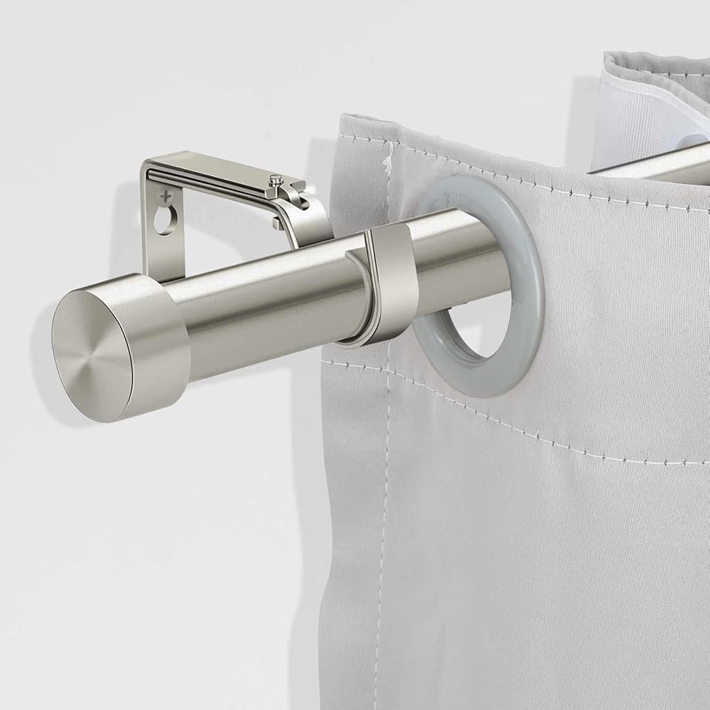 Skillfully molded quality steel with a consistently smooth finish. Strong and durable, heavy duty brackets and solid screws that don't strip. Strong metal rod of 1-inch diameter, long-lasting and strong enough that can withstand the heavy curtains up to 30 lb. Each curtain rod set is carefully checked for quality assurance.