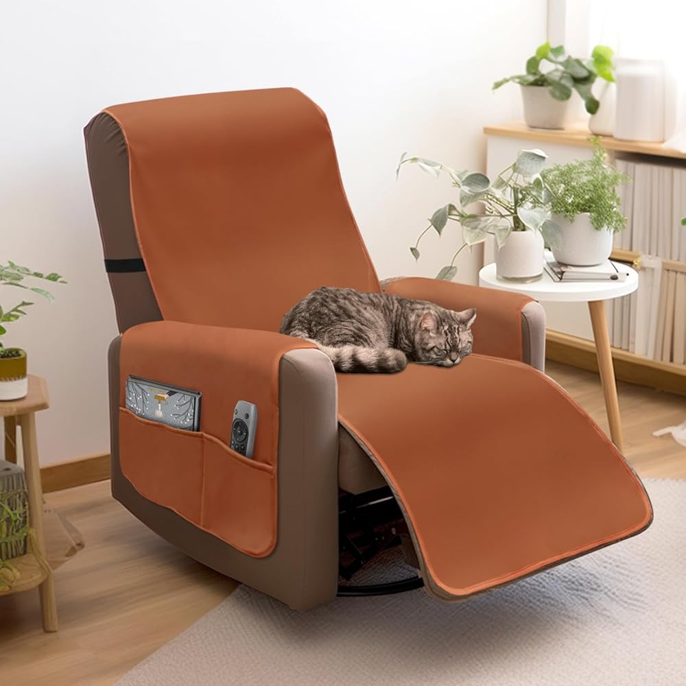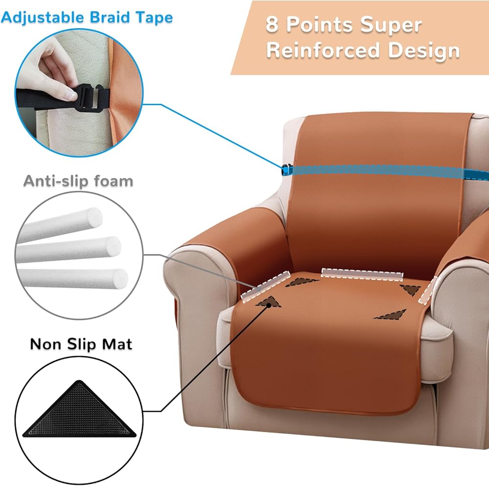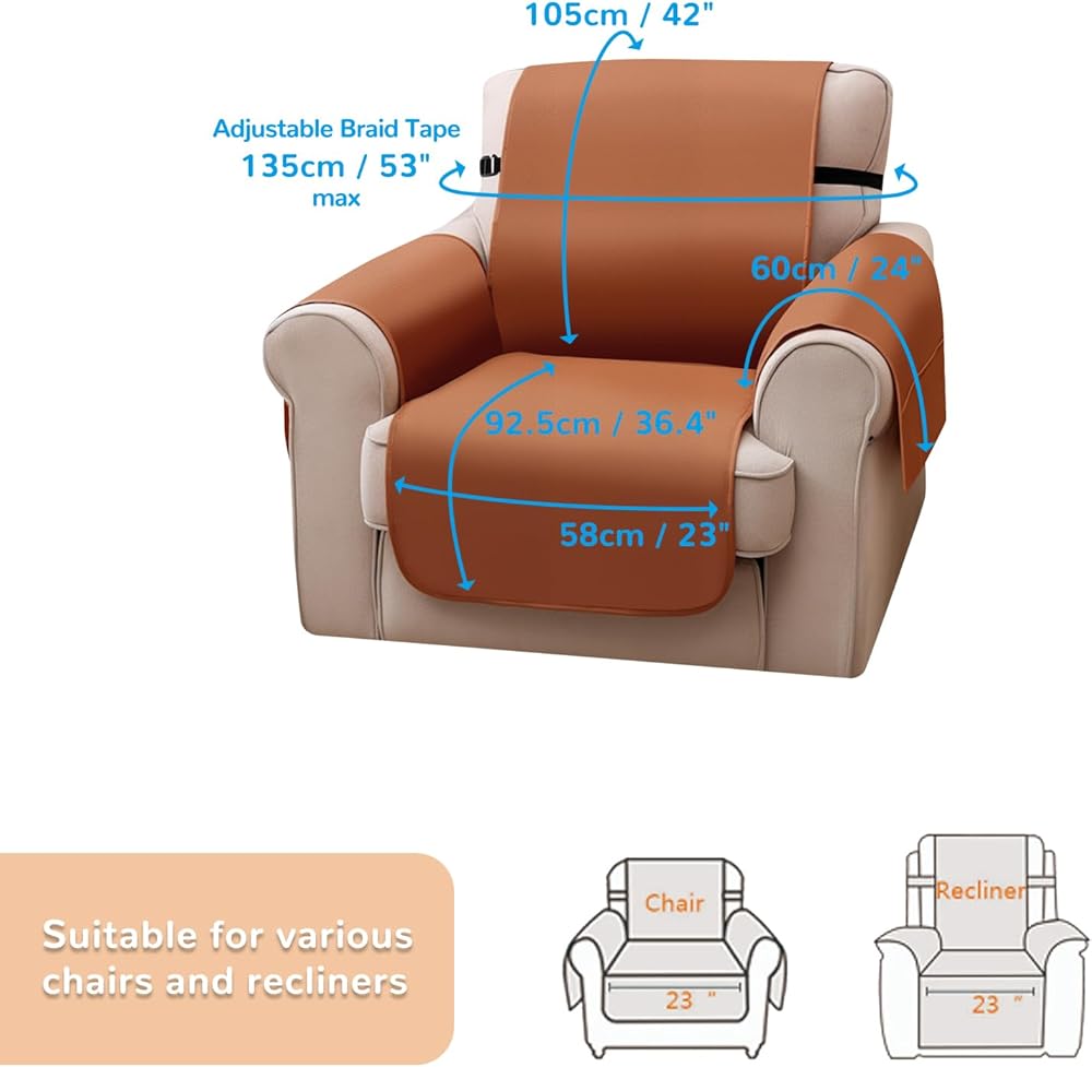Sweet Forest Recliner Sofa Cover, Superfiber Leather Chair Cover,Water Resistant Anti Slip Furniture Protector with Non Slip Mat, Adjustable Braid Tape, Pocket, Slipcovers for Pets(Orange, 23")