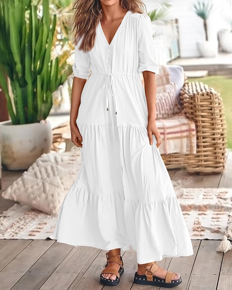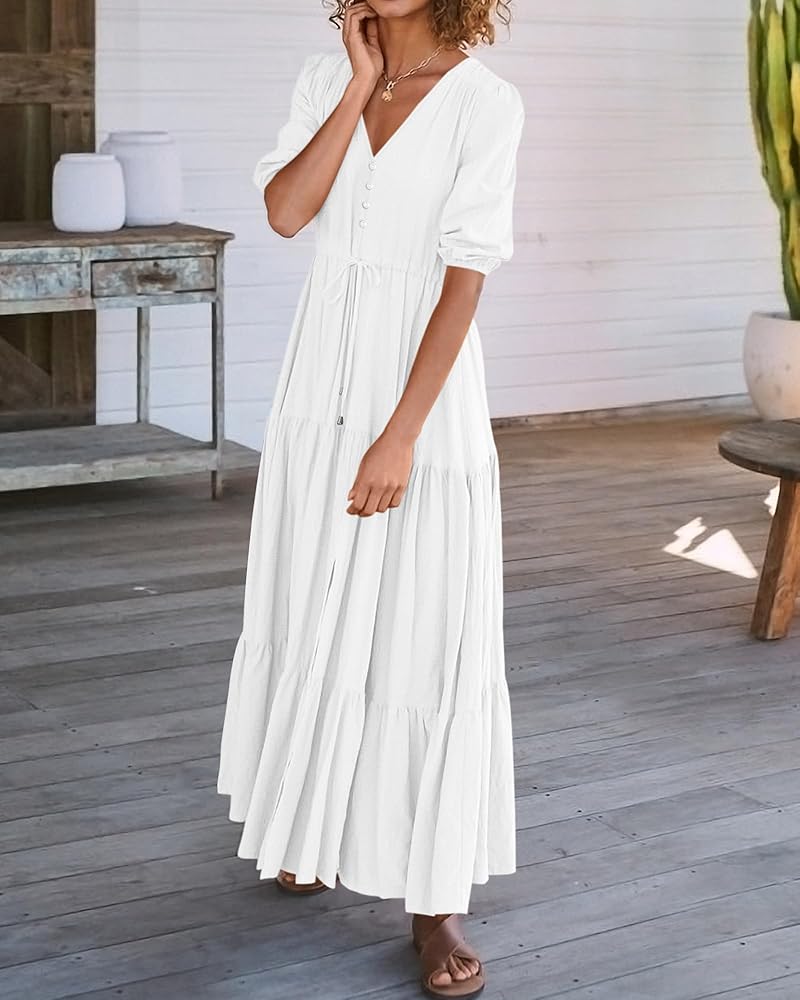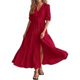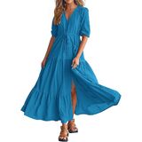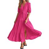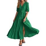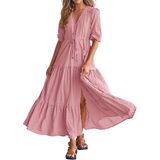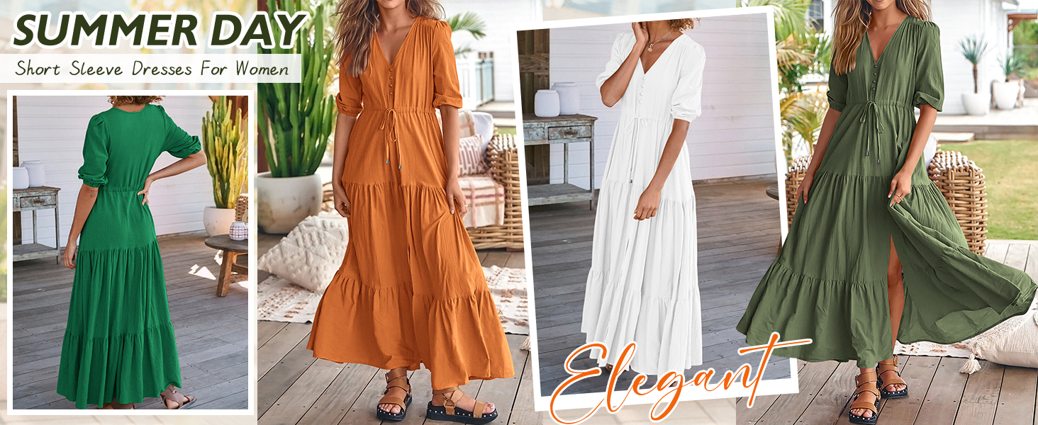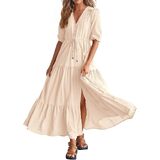Decorative Buttons / Adjustable Drawstrings At Waist / Split At Front / Elastic Cuffs / Short Sleeve V Neck Summer Dresses / Wedding Guest Dresses For Women / Baby Shower Dresses / Casual Summer Dresses / Spring Dresses / Easter Dresses / Maternity Dresses For Photoshoot / Beach Dresses For Vacation / Holiday Dresses / Boho Long Dresses / Size: S=US 4-6, M=US 8-10, L=US 12-14, XL=US 16-18, XXL=20-22