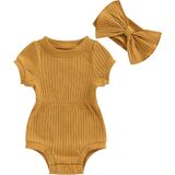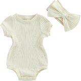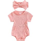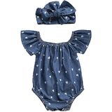 Size:70/80/90/100,different 4 size to choose, Lovely baby infant girls summer princess off-shoulder sleeve button romper jumpsuit short with headband cute summer clothes.