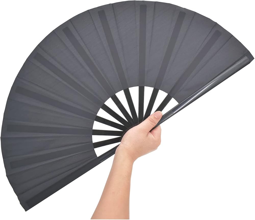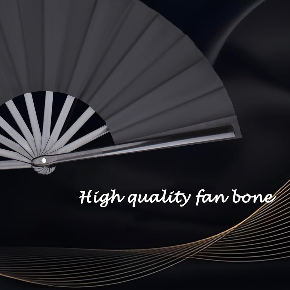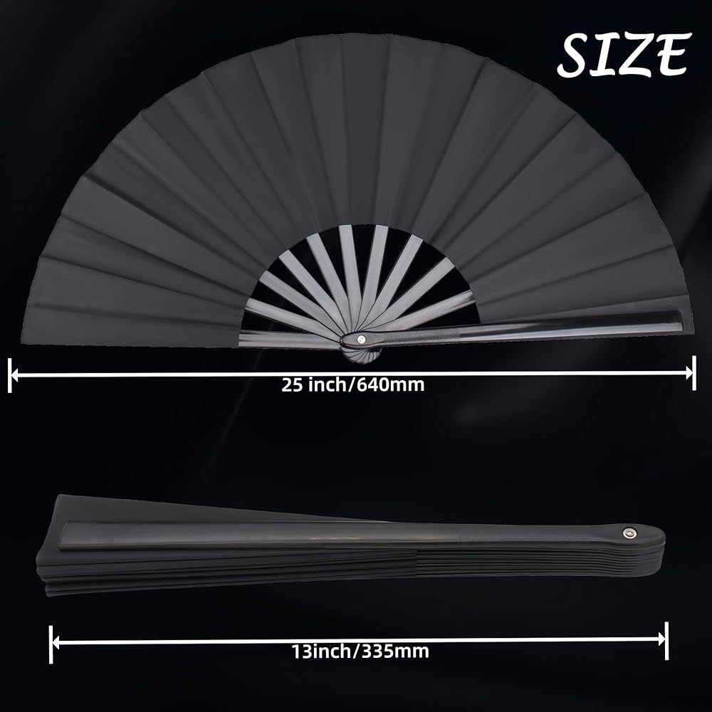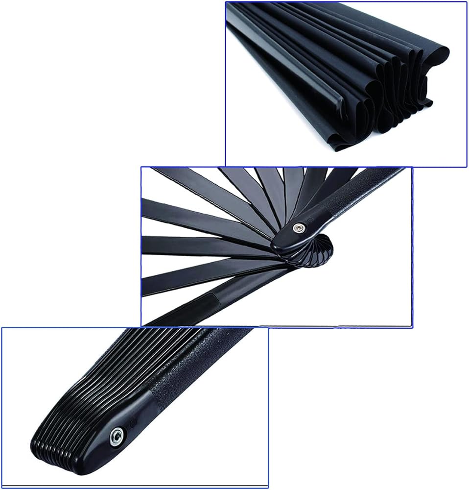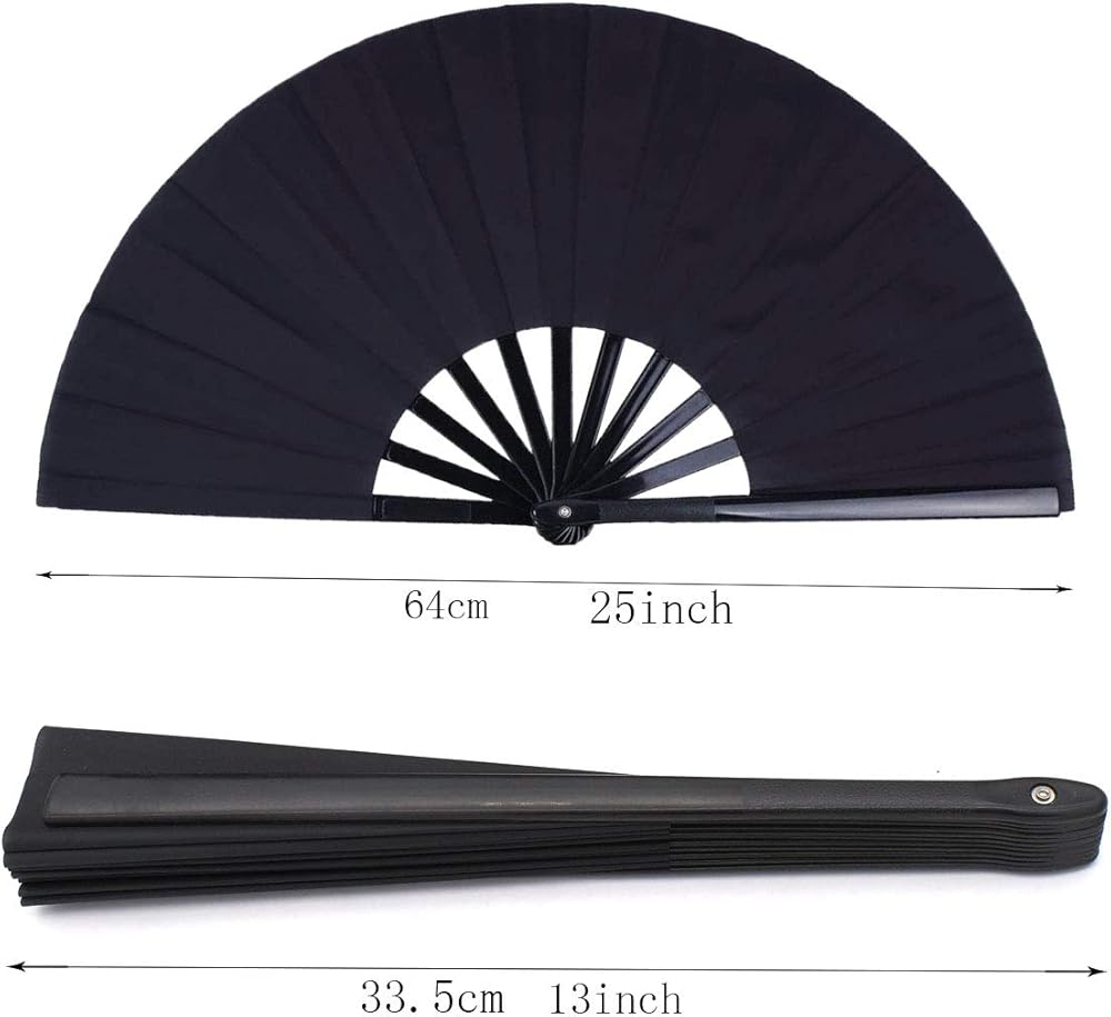 MATERIAL & SIZE:Folding hand fan made of quality plastic and black nylon-cloth, lightweight and sturdy fabric;Handheld Fan Size 13 x 25 inches/ 33.5 x 64 cm (L x W, unfold state)