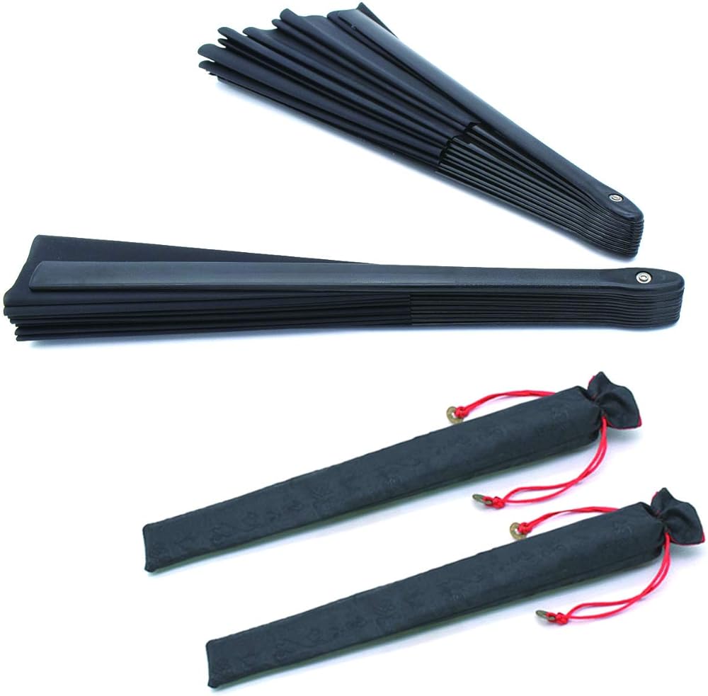 2 Packs large black folding silk hand fan hand folding fans Chinese Tai Chi folding fan for men and women performance, dance, decorations, festival and gift