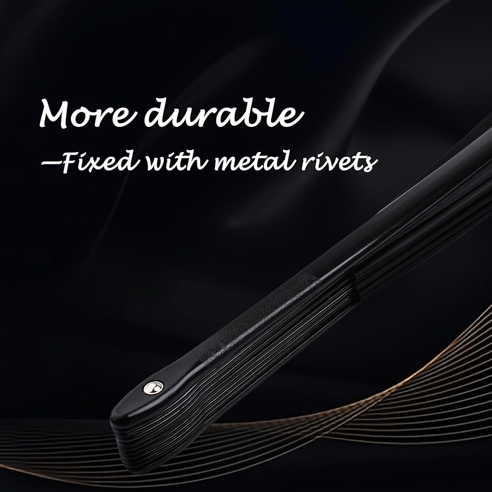 MATERIAL:100% handmade,Folding hand fan made of quality plastic and black nylon-cloth, and fastened with high quality METAL rivets, make these fans very durable,lightweight and sturdy fabric.