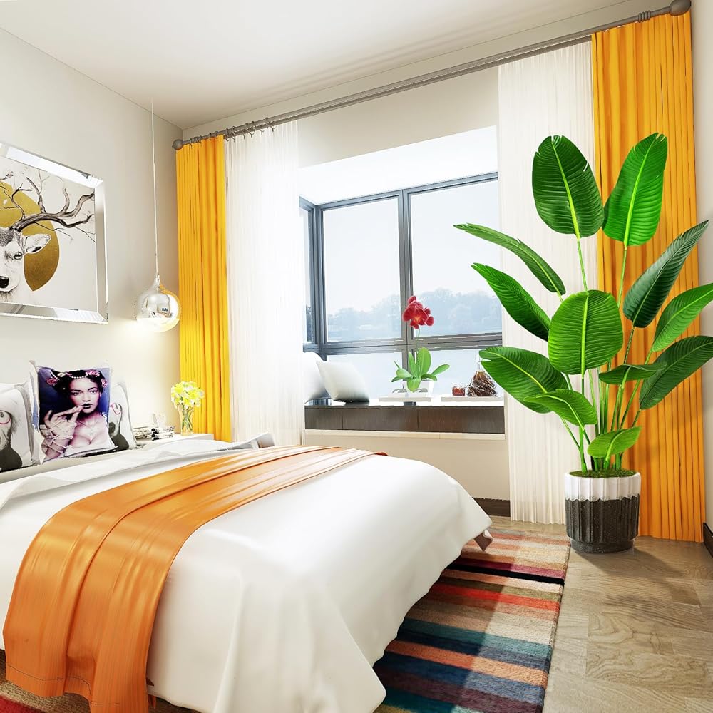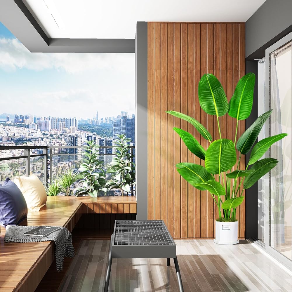 【STURDY AND ADJUSTABLE】 Our artificial silk bird of paradise palm tree outfitted with inner metal wires, you can adjust the leaves to the shape you like. This artificial plant will maintain its height, color and shape for years without pruning and shaping to ensure the aesthetic is maintained.