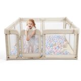 【360° Full Vision & Stable Play Pen】You can watch your baby from all angles by the see-through breathable mesh, it also gives your baby a view all the way around, make them feel comfort and safe. There are four strong suction cups and a fabric bottom, so it's difficult for baby to move or tip over it. With the help of two hand grips, babies can learn to walk or stand in this safety enclosure