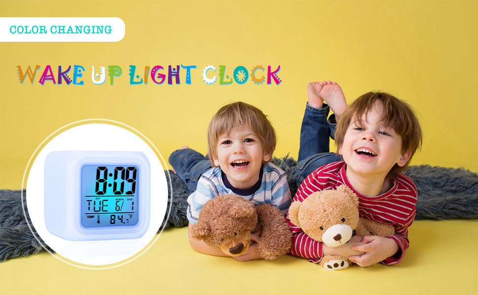 Kids Alarm Clock, Student Digital Clock for Boys Girls, 7 Colors Changing Light Bedside Clock for Children's Bedroom, Digital Alarm Clocks with Snooze, Temperature, Gift Idea for Kids