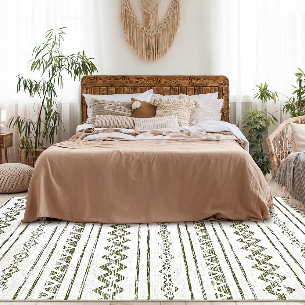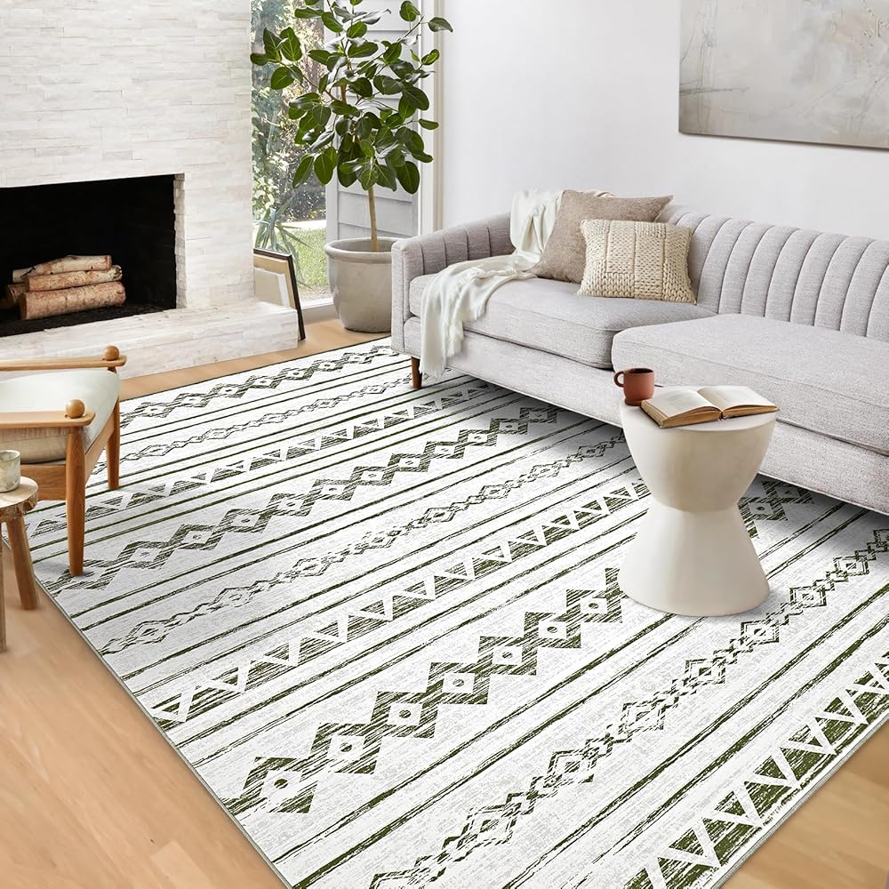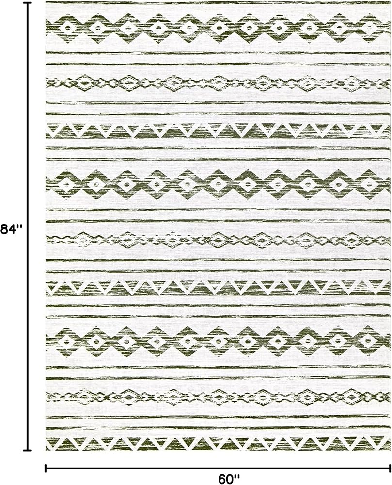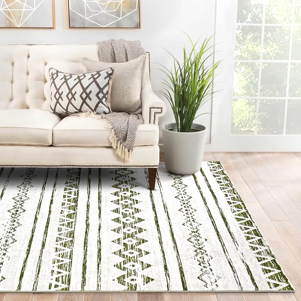 Area Rug Living Room Carpet: 5x7 Large Moroccan Soft Fluffy Geometric Washable Bedroom Rugs Dining Room Home Office Nursery Low Pile Decor Under Kitchen Table Sage Green