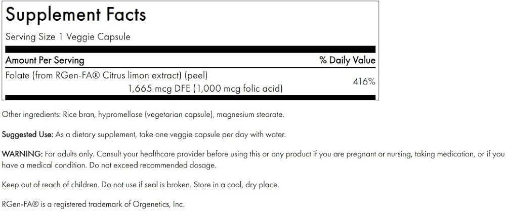 Swanson Real Food Folic Acid Folate Vitamin B-9 Cardiovascular Prenatal Health from Citrus Limon Extract Vegan Gluten-Free Non-GMO B9 1000 mcg 100 Veggie Capsules (Caps)