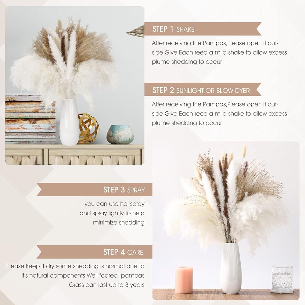 【ممتازة وموثوقة 】 زهور البامبا المجففة مصنوعة من أعشاب القصب الطبيعية عالية الجودة والصديقة للبيئة. عملية التصنيع الخاصة لدينا تجعل العشب الجاف أكثر انتفاخًا. إن متانة باقة عشب البامبا الخاصة بنا تجعلها استثمارًا حكيمًا لأولئك الذين يريدون زخرفة طويلة الأمد. يمكنك دائمًا الاستمتاع بلمسة الطبيعة في منزلك.