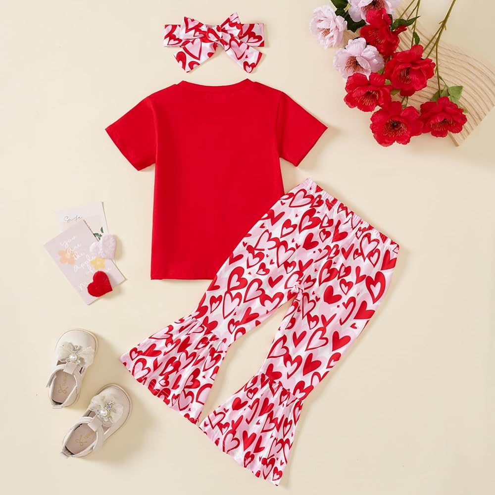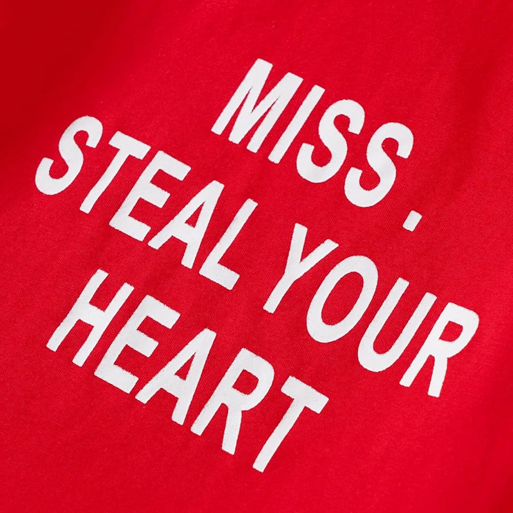 Designe: The Fun Letters 'Mama's Valentine' 'Little Valentine' 'Sweet Heart' printed t-shirt and love printed t-shirt, with a variety of love pattern bell-bottoms, fashion and novelty, is the best Valentine's Day Gift for girls