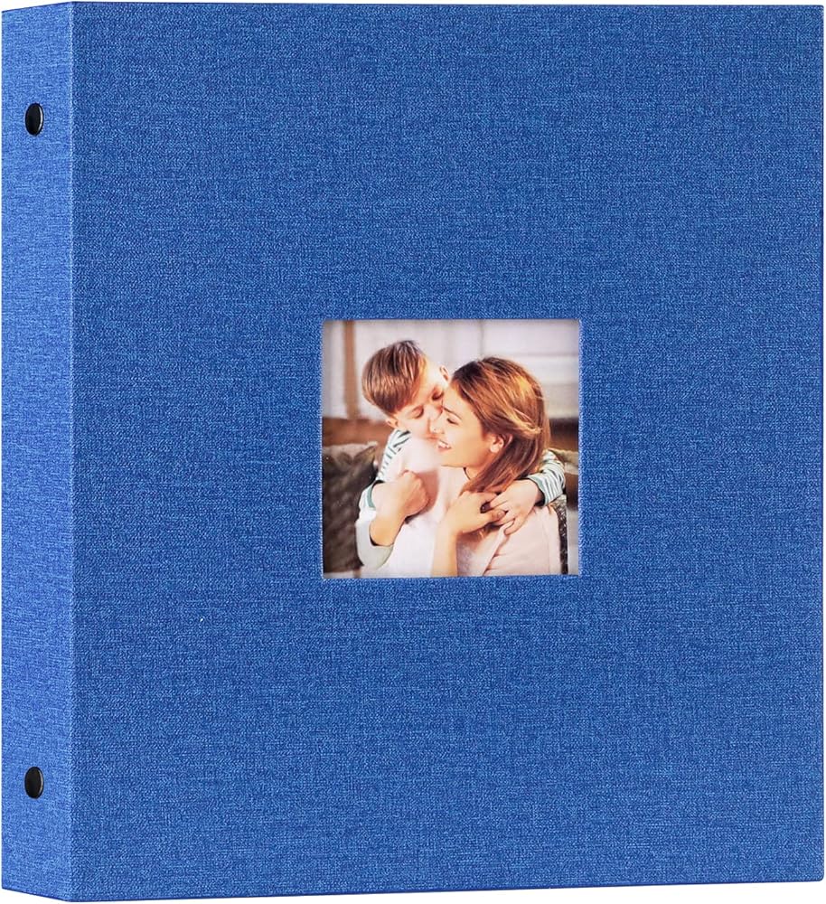 Lanpn Photo Album 11x14, Linen Hard Cover Acid Free Slip Slide in Photo Albums Sleeves Holds 100 Top Load Vertical Only 11x14 Pictures (Blue)