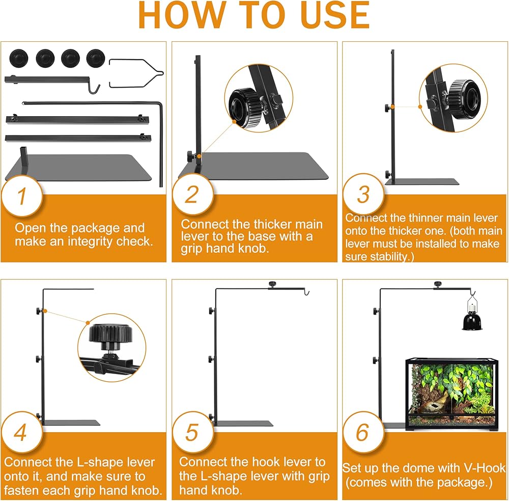 Reptile Domes Stand, Adjustable 17-37 Inch Heat Lamp Stand Fixture for Terrarium, Metal Basking Lamp Holder, Suitable for All Reptile Domes Lamp,XL Size
