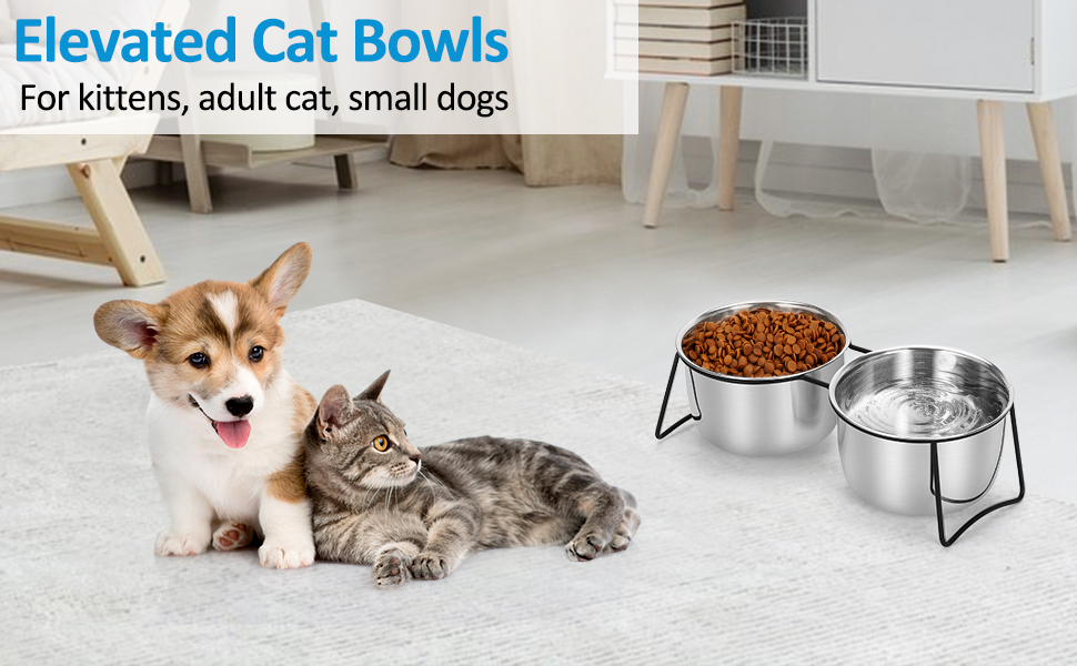 【وعاءان من الفولاذ المقاوم للصدأ】وعاء طعام ومياه القطط مصنوع من الفولاذ المقاوم للصدأ بدرجة الطعام وهو مقاوم للصدأ وسهل التنظيف. يمكن ملء كل أدوات مائدة بـ 36oz من الماء، والتي يمكن أن تلبي احتياجات النظام الغذائي اليومي للحيوانات الأليفة واحتياجات الشرب.