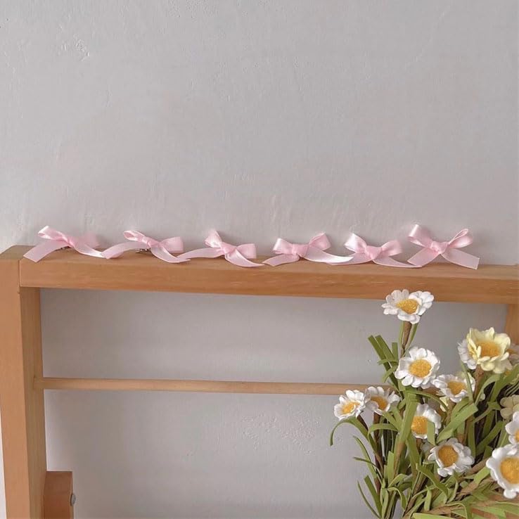 FMR 6PCS Mini Pink Bow Hair Clips Cute Bowknot Hair Clips Ballet Bow Hair Clips Baby Toddler Hair Clips for Women and Girls