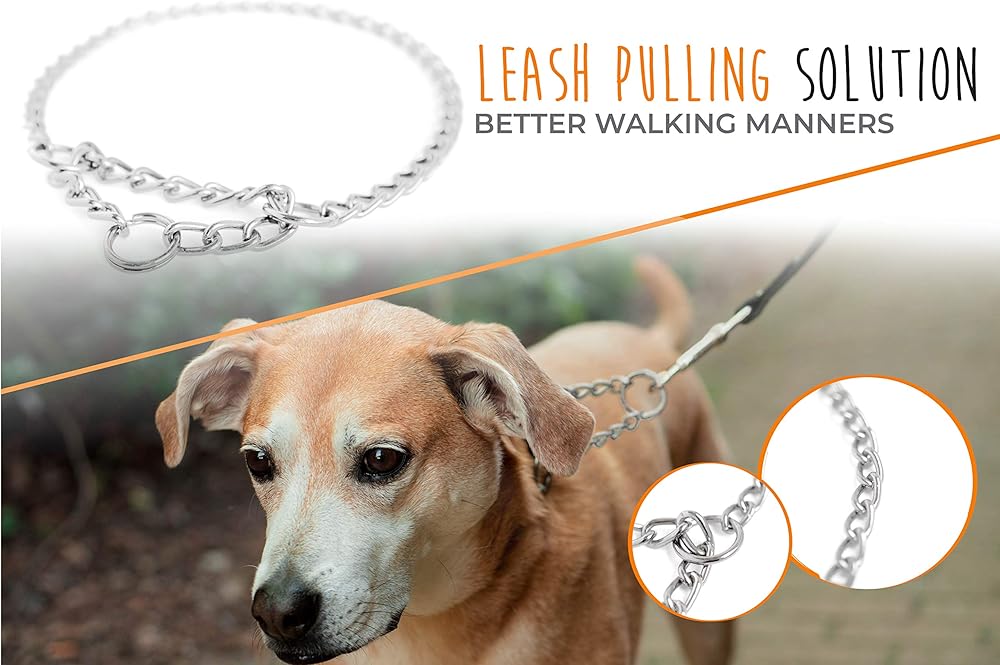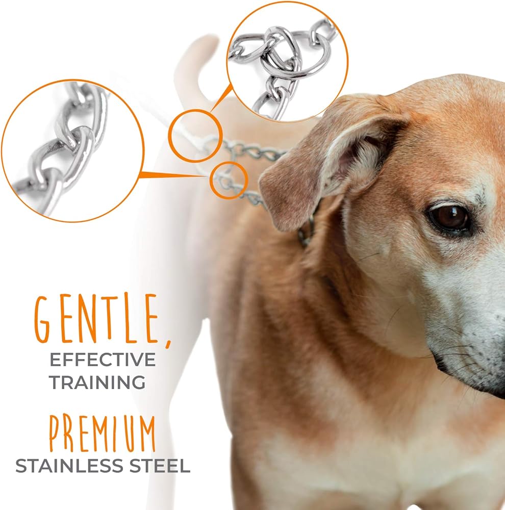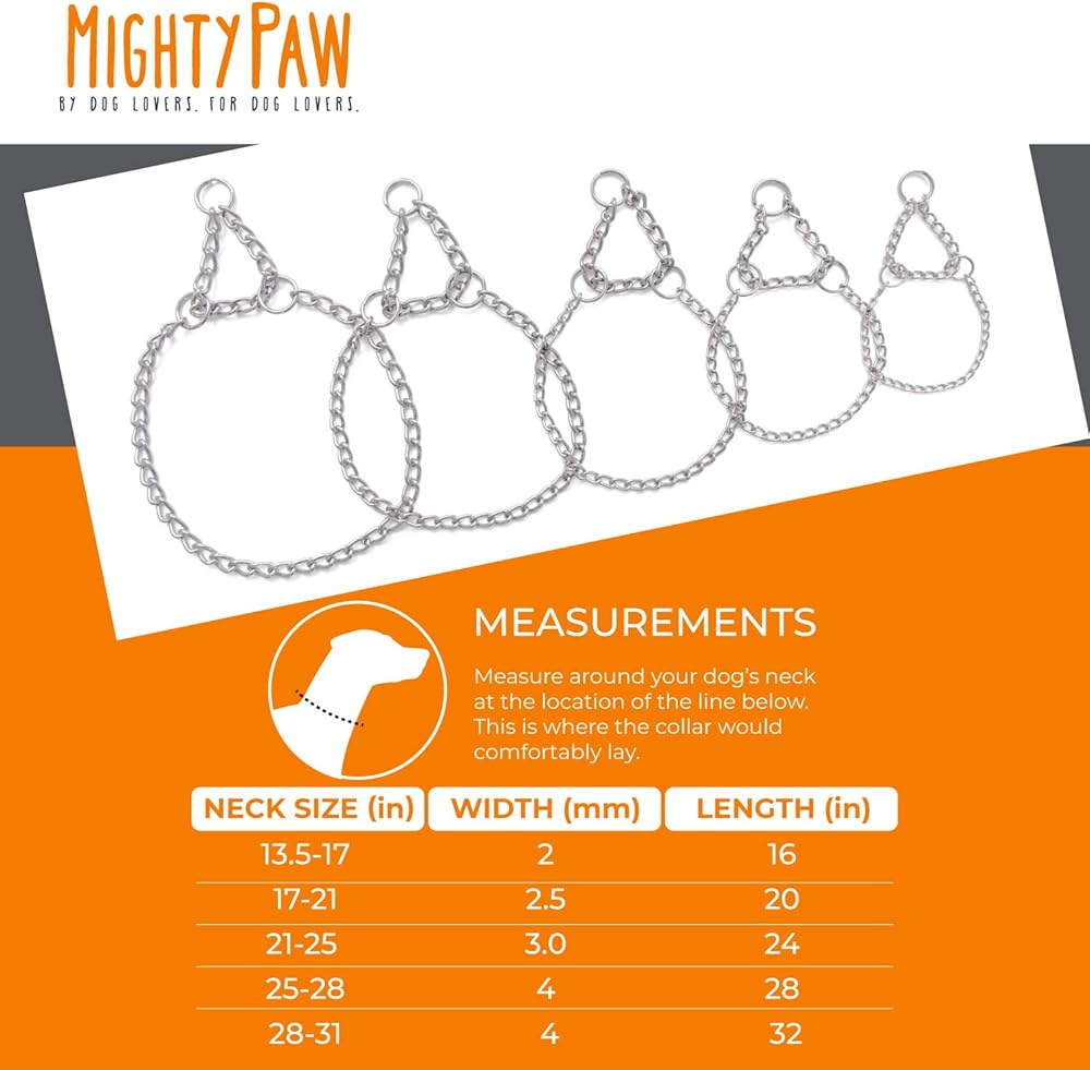 Mighty Paw Martingale Training Dog Collar - Modified Slip Chain - Trainer Approved - No More Pulling - for All Breed Sizes - No Pulling Dog Collar - Stainless Chain - Martingale - (32")
