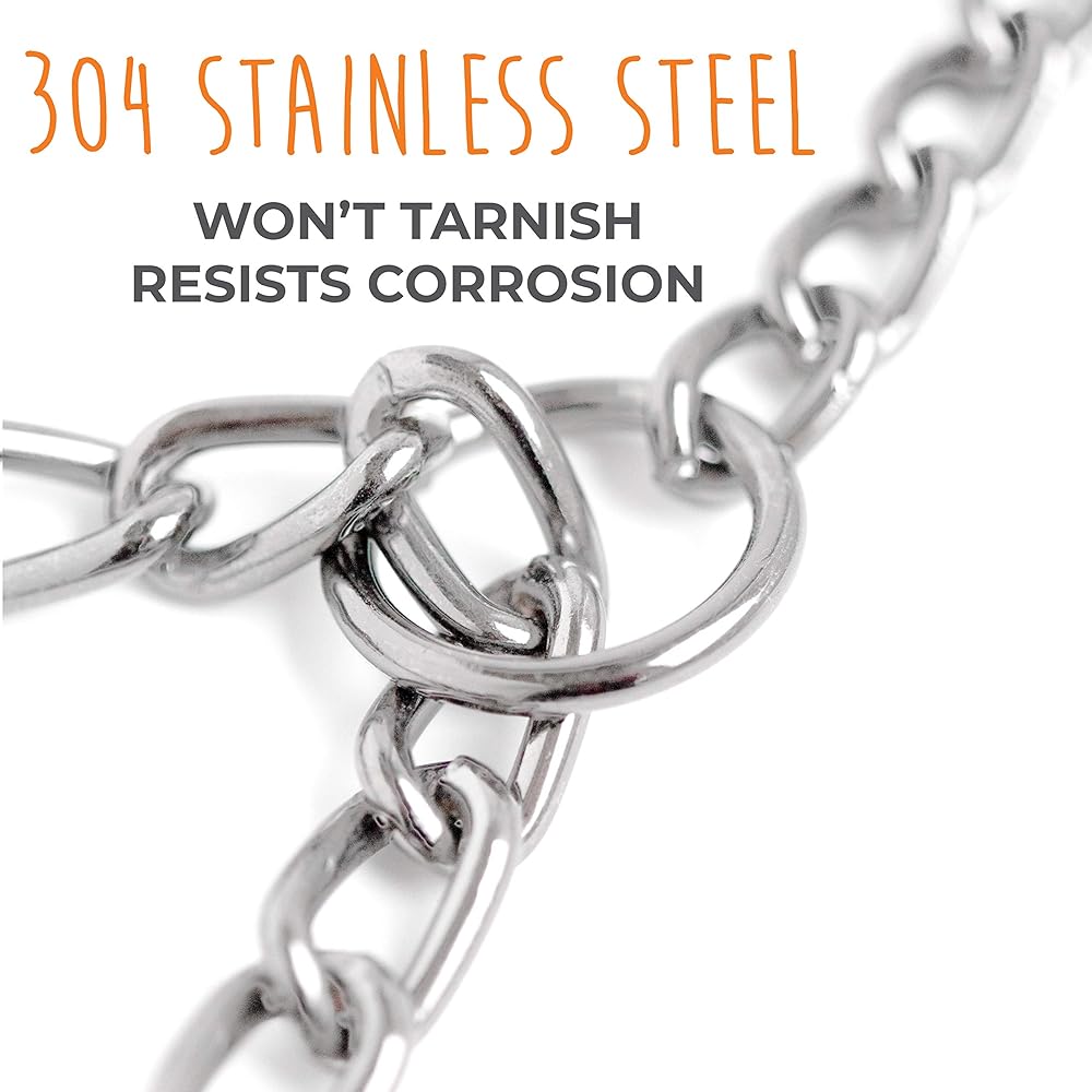 Built to Handle the Most Playful Dogs: Made with premium quality 304 Stainless Steel our collar is durable and won't rust or tarnish over time. It's also chew-proof and won't stain Fido's neck while wearing. Perfect for your rough and tumble pup!