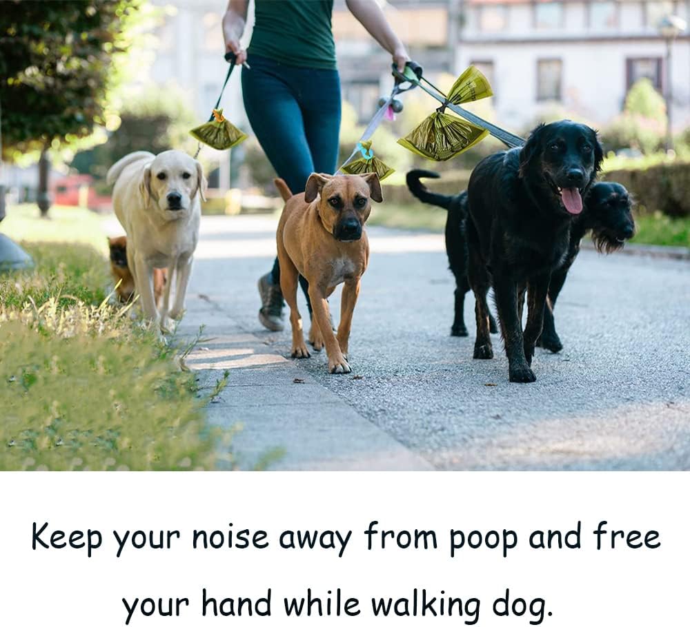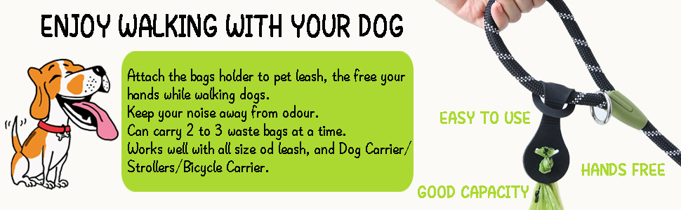 ✔ Hands-free Poop Bag Holder -- Attach this dog poop bags holder to your pet leash, no need to carry the dog poop bags on hand all the time. Enjoy walking with your dog.