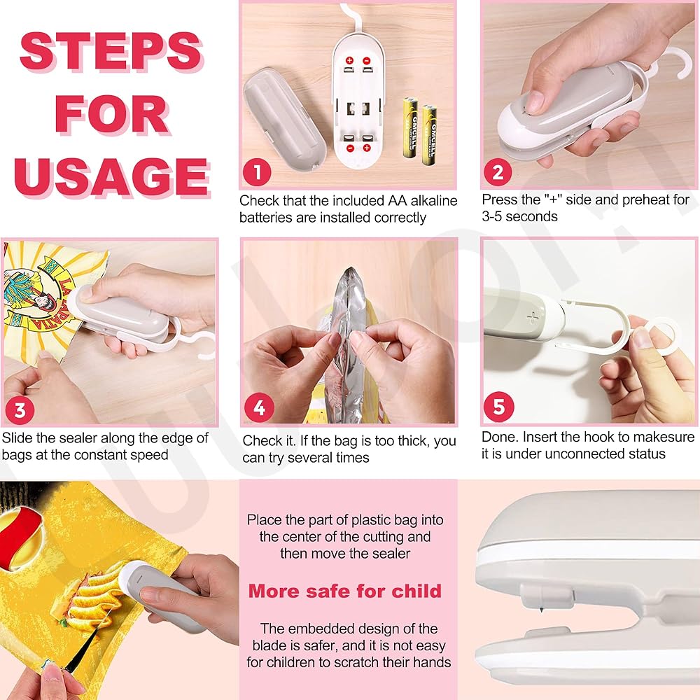 👜EASY TO CARRY AND STORAG: Made by ABS material, the mini bag sealer is very durable and lightweight. You can easily put it into your bag, pocket or car, perfect for travel, camping, and hiking. In your home, you can put him in the drawer or hang it on the cabinet. You will find that you can use it anytime, anywhere!