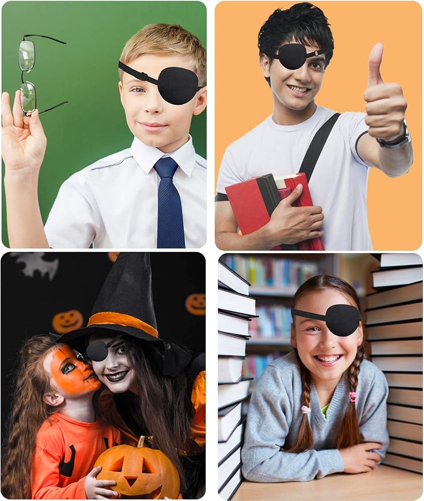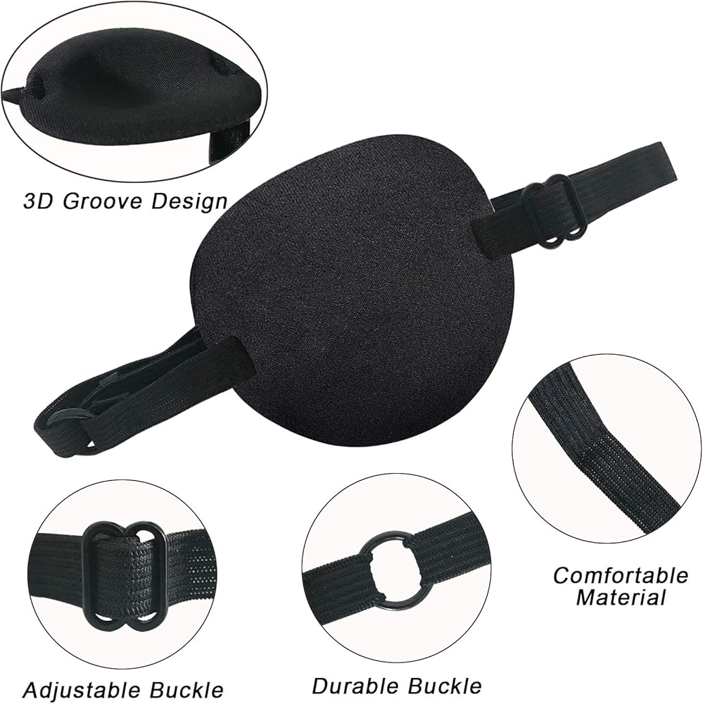 THSIREE 2 Pcs Eye Patch for Adults and Kids, Single Eye patches with Adjustable Buckle Comfortable Pirate Eye Patch for Amblyopia Strabismus Lazy Eye, Black