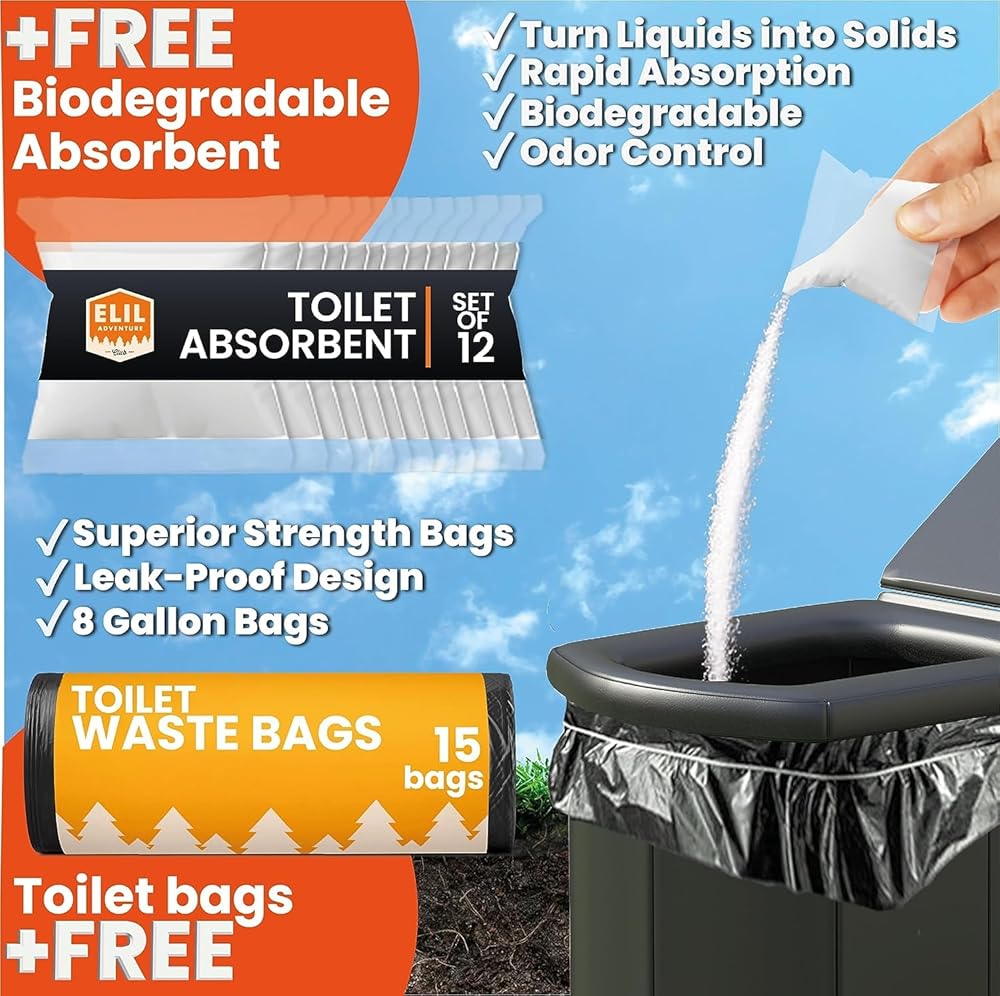 Camping Toilet Portable Potty for Adults: Portable Potty with a Carry Bag, 12 x Liquid Absorbent Gel and 12 x 8 gallon Camping Toilet Bags