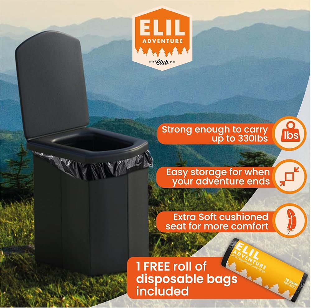 Portable Toilets for Travel – Our folding toilet camping set is designed to be as lightweight and compact as possible, without compromising on functionality. It comes with an Elil Design Carry Bag for easy storage under the passenger seat or in the trunk of your vehicle